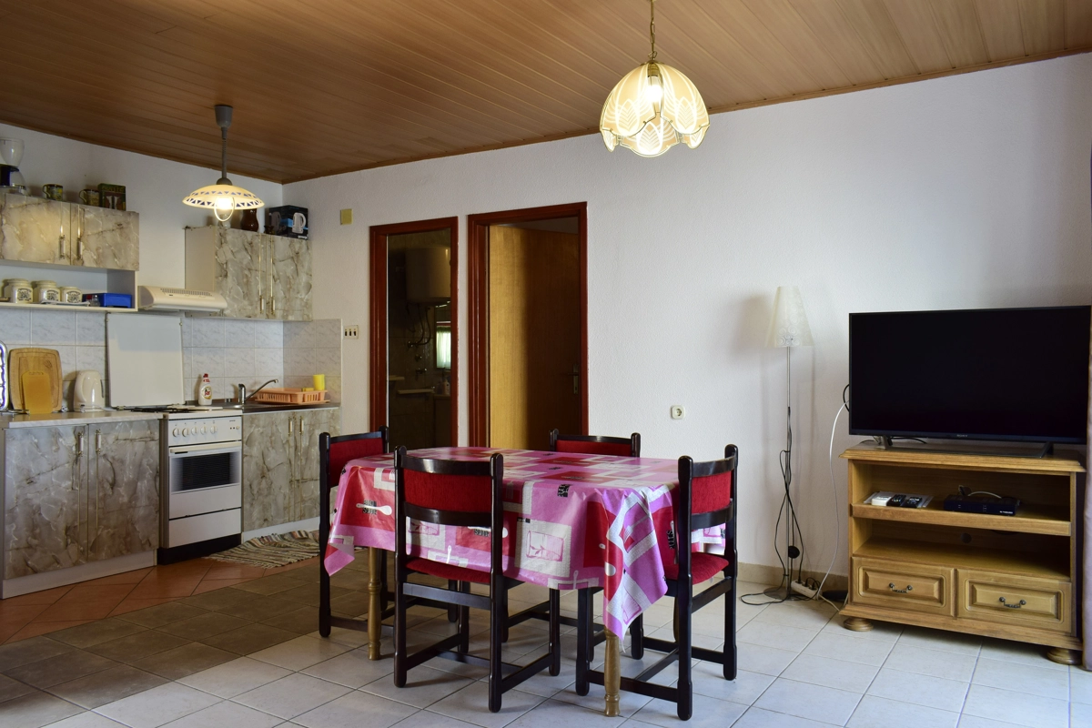 Questo piccolo e confortevole appartamento è ideale per un massimo di 4 persone e si trova al primo piano di una casa privata nel centro di Malinska. È composto di una camera da letto, un bagno con doccia ed un soggiorno collegato alla cucina. Nel soggiorno è presente un divano letto per due persone. Dal soggiorno gli ospiti hanno accesso ad un balcone con vista sul mare. L'appartamento è climatizzato e dotato di wi-fi. Al piano terra dietro l'edificio c'è un terrazzo condiviso che può essere utilizzato. Il parcheggio è previsto di fronte all'edificio. L'appartamento si trova in un'ottima posizione, quindi le spiagge, i ristoranti ed i negozi sono nelle vicinanze.