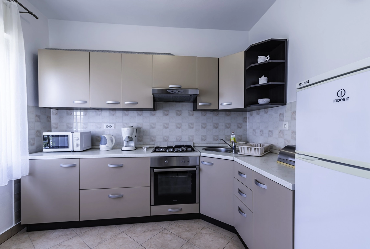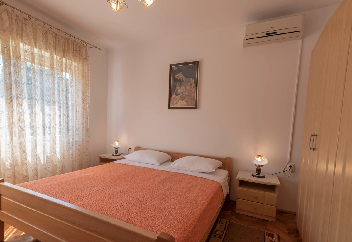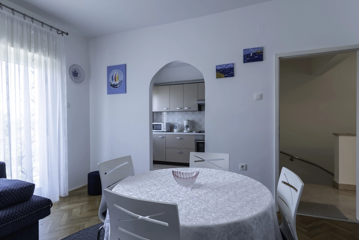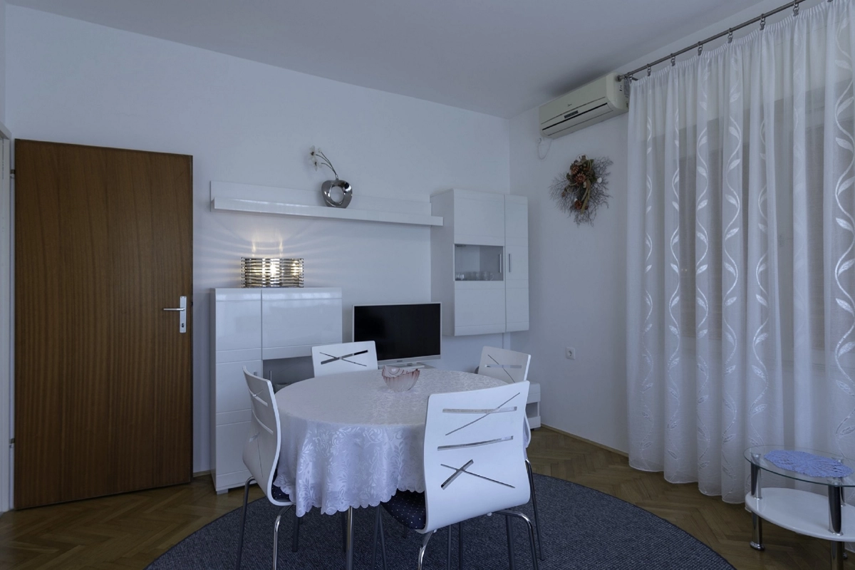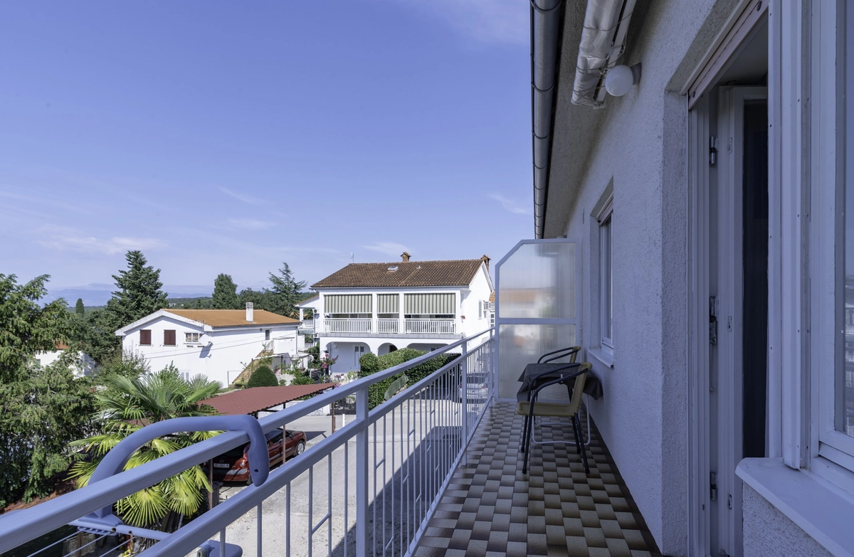 Diese prachtvolle Ferienwohnung befindet sich im Malinska auf der Insel Krk, etwa 150 Meter von einem Kies- und Betonstrand entfernt, gleich entfernt ist sie von dem nἂchsten Restaurant und nur 200 Meter vom nἂchsten Geschἂft. Die Ferienwohnung mit einem wunderschὂnen Meerblick, errichtet mit Liebe und Stil, befindet sich im ersten Stock eines Familienhauses. Sie besteht aus einem Schlafzimmer mit Doppelbett und einem grossen Kleiderschrank sowie einer Klimaanlage, einem Wohnzimmer mit Tisch und Stὓhlen, Fernseher mit Satellitenanschluss, Klimaanlage und Ziehkautsch fὓr eine Zusatzperson, einer gut ausgestatten Kὓche (Koch- und Essgeschirr, Mikrowelle, Backofen, Herd, Kὓhlschrank mit Tiefkὓhlfach). Die Kὓche bietet auch einen schὂnen Meerblick. Vom Wohnzimmer aus geht man auf den Balkon, welcher auch einen wunderschὂnen Meerblick bietet. Der Balkon hat eine Markise, die Sie von der Sonne schὓtzt und die Ihnen die Mὂglichkeit gibt, Ihre Privatsphἂre in jeder Jahreszeit zu geniessen.