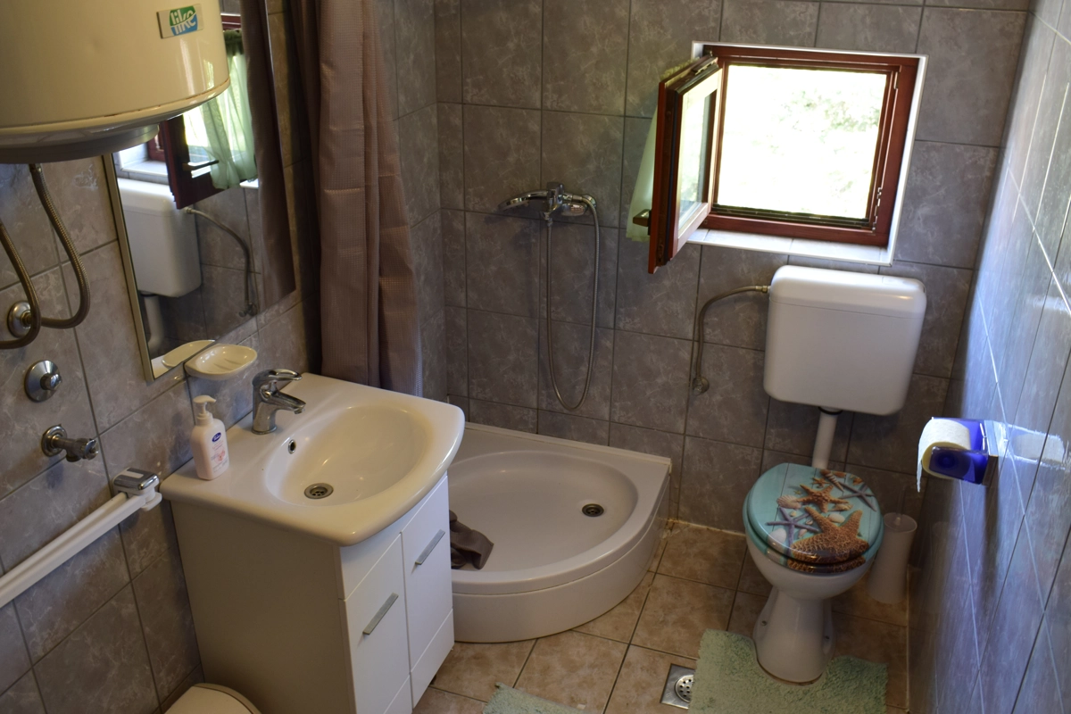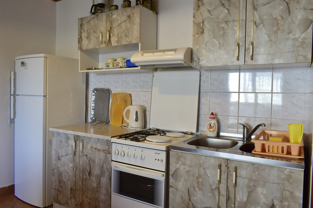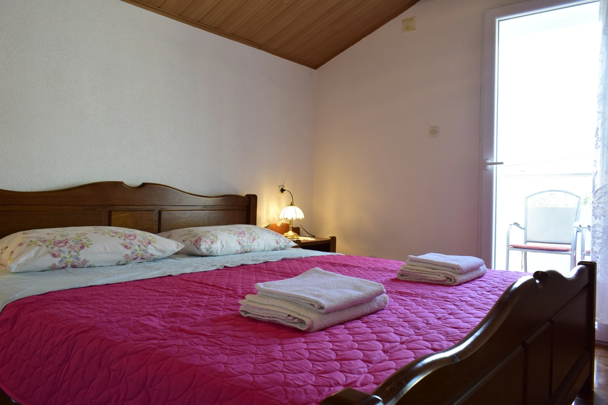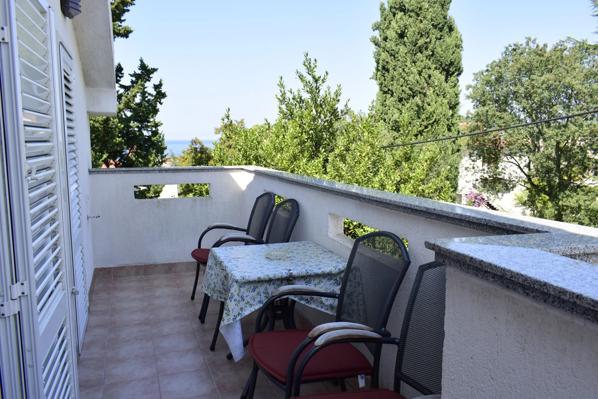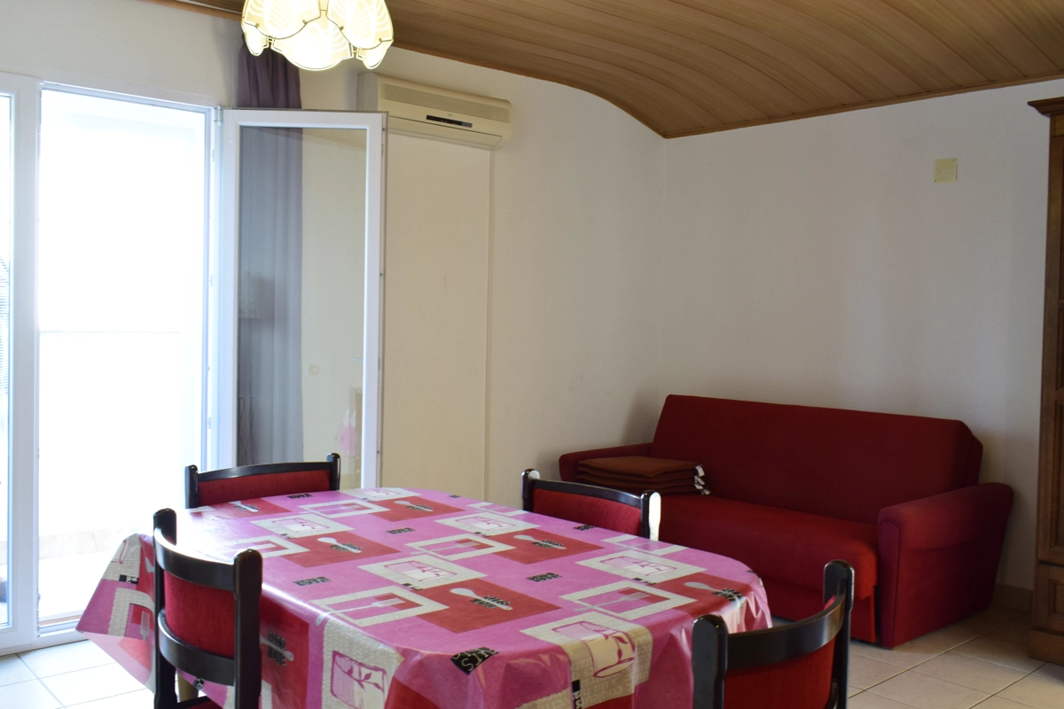 Diese kleine bequeme Ferienwohnung, ideal fὕr maximal 4 Personen, befindet sich im ersten Stock eines Familienhauses in Malinska, im Ortszentrum. Sie besteht aus einem Schlafzimmer, einem Badezimmer mit Duschkabine und einem Wohnzimmer, verbunden mit der Kὕche. Im Wohnzimmer ist eine Ziehkautsch fὕr zwei Personen. Vom Wohnzimmer aus gelangt man auf einen Balkon, wo man einen atemberaubenden Meerblick genieβen kann. Die Wohnung verfὕgt ὕber eine Klimaanlage und ὕber kabellose Internetverbindung (WLAN). Die Terrasse im Erdgeschoβ kὂnnen alle Gἃste nutzen.