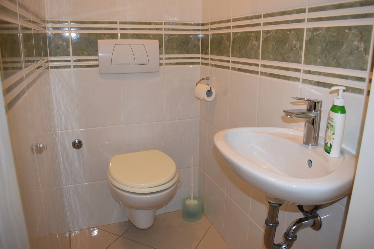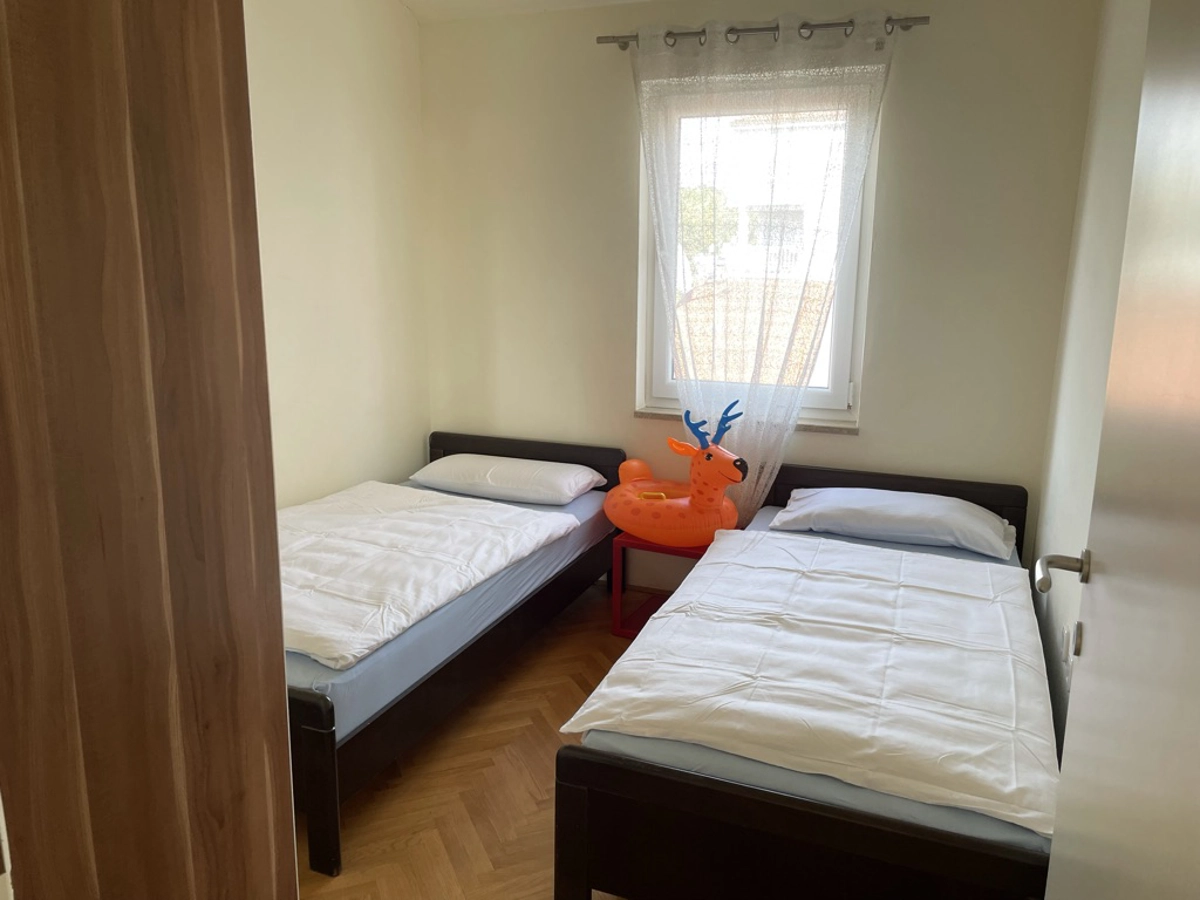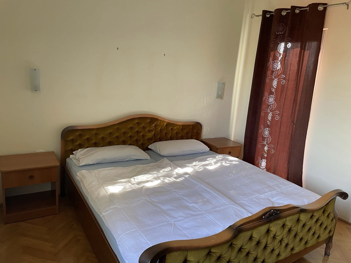 Die Ferienwohnung Vista Mare befindet sich im zweiten Stock eines kleineren Wohngebἂudes und hat einen schὂnen Meerblick. Sie besteht aus drei Schlafzimmern, einer Kὓche mit Wohnzimmer und Esszimmer, zwei Balkonen, einem Badezimmer und getrennter Toilette. Sie kann von 6 bis 8 Personen Unterkunft bieten. Im Hof ist ein Parkplatz gesichert. Den Gἂsten stehen zur Verfὓgung kostenloses WLAN, Klimaanlage, Satellitenanschluss, Wasch- und Geschirrspὓlmaschine.