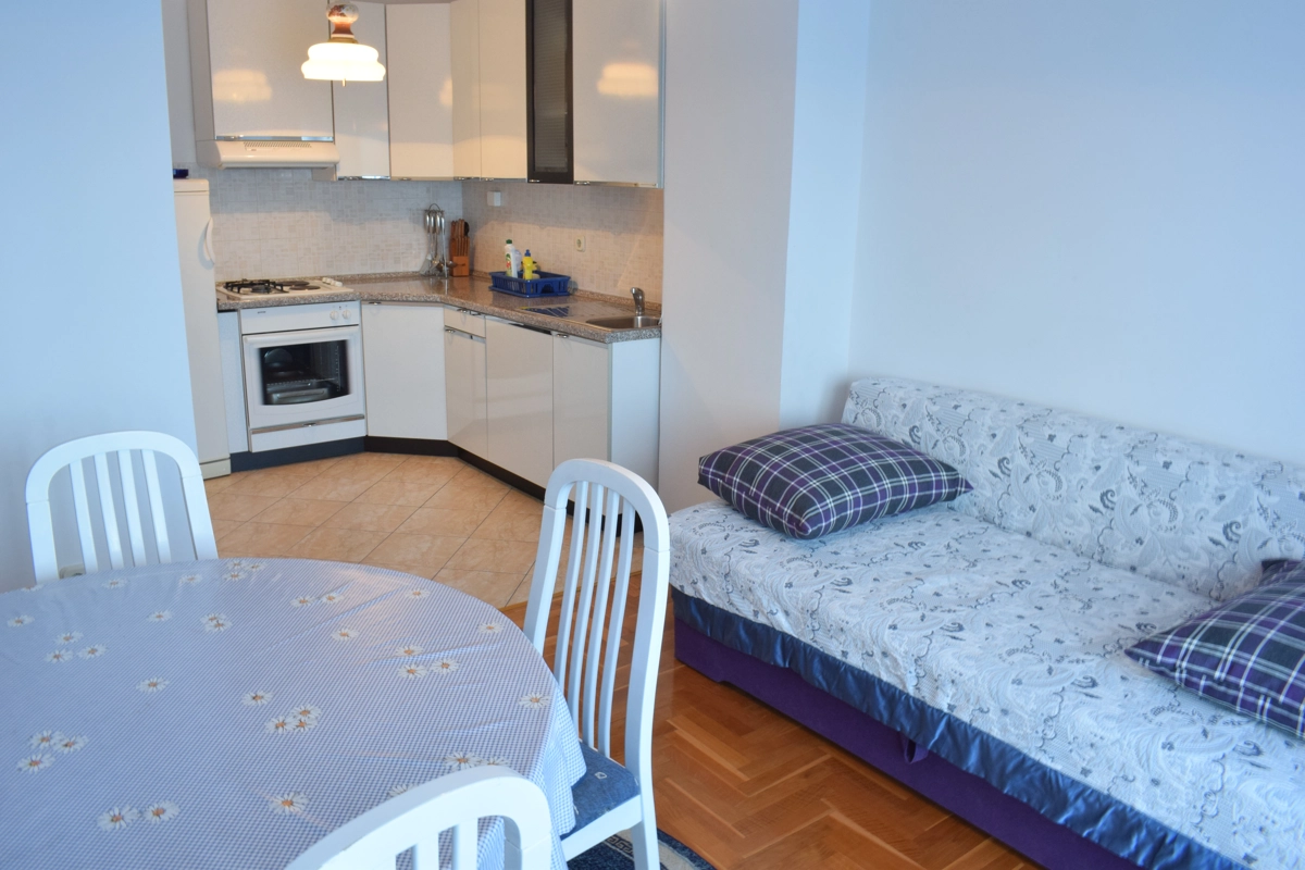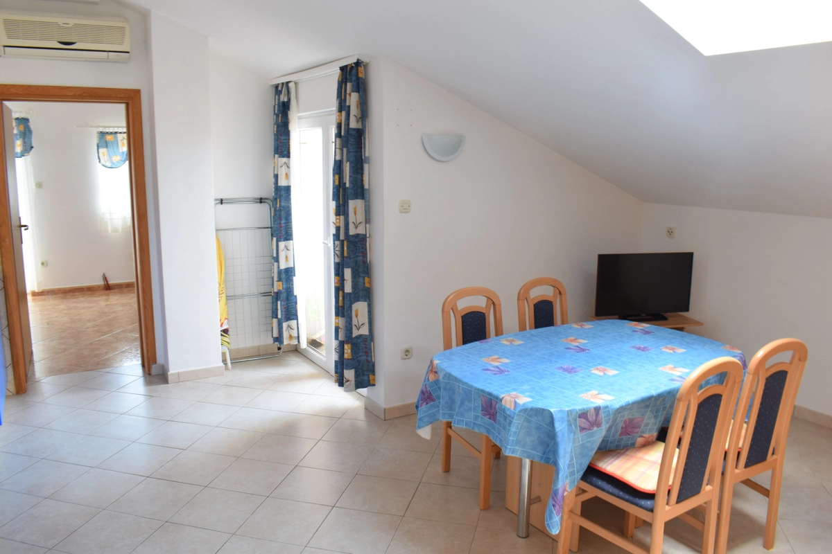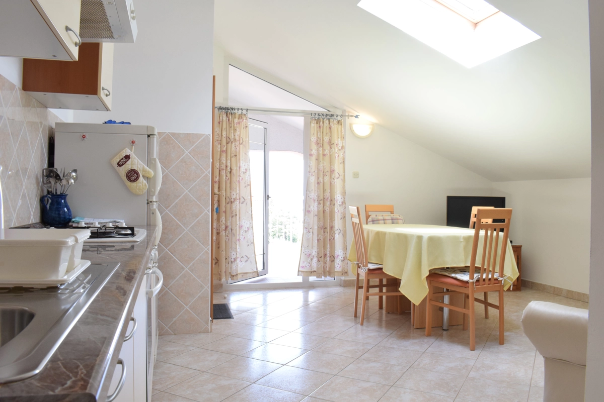In einem neu erbauten zweistöckigen Haus befinden sich vier modern eingerichtete Ferienwohnungen mit Meerblick. Das Gästehaus liegt in einer ruhigen Lage, etwa 1 km vom Malinska-Zentrum entfernt. Der nächste Kiesstrand und das nächste Restaurant sind kaum 150 Meter vom Haus entfernt, das nächste Geschäft 350 Meter. Allen Gästen steht eine Grillvorrichtung und ein Parkplatz im Hof zur Verfügung. Alle Einheiten haben eine Klimaanlage und kostenfreies WLAN/WiFi.
