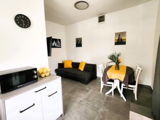 Diese schöne Ferienwohnung ist nur 50 Meter bzw. 1 Laufminute vom nächsten Kiesstrand entfernt. Vom Busbahnfof ist sie nur 100 Meter entfernt, das Stadtzentrum, wo Sie, nach Belieben, eine Bar, ein Restaurant oder eine Konditorei besuchen können, ist nur 100 Meter von der Wohnung entfernt. Dem Wohnbereich gehört eine separate Eingangstür, zur Verfügung stehen kostenfreies WLAN und kostenloser Parkplatz. Die Wohnung hat einen Sitzraum mit einer Ziehkautsch für zwei Personen, einen Essraum mit Esszimmertisch und Stühlen, eine Küche mit Gasherd (Backofen) und mit einem Kühlschrank mit Gefrierfach. Ein Flachfernseher mit Satellitenanschluss steht auch zur Verfügung. Ein grosser Balkon mit Meerblick, bietet Ihnen die Möglichkeit, beim Kaffeetrinken entspannt die Naturschönheiten zu bewundern. Andere interessante Strände sind: Rova (1,2 km von der Wohnung entfernt), Haludovo (800 m entfernt) und der Haupstrand Rupa, kaum 100 Meter von der Wohnung entfernt.