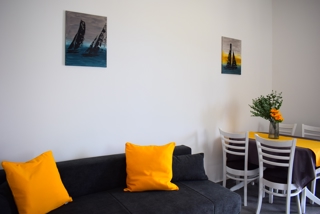 Diese Ferienwohnung befindet sich in der Nähe des Zentrums von Malinska, 50 Meter vom nächsten Strand und 100 Meter vom Busbahnhof entfernt. WiFi im gesamten Haus kostenlos (gute Empfangsqualität) genauso wie das Parken. Die Wohnung hat ein Schlafzimmer mit Doppelbett und einen grossen Kleiderschrank, ein Wohnzimmer mit Ziehkautsch für weitere zwei Personen und mit einem Fernseher mit Satellitenanschluss, ein Essbereich und eine gut ausgestattete Küche: Kochherd mit 4 Elektroplatten, Backofen, Kühlschrank mit Gefrierfach, Kaffeemaschine, Wasserkocher und alle zum Kochen notwendigen Utensilien. Das Bad hat eine Dusche, ein Waschbecken und eine Toilette. Die Esszimmertür führt zur Terrasse mit einem wunderbaren Meerblick.