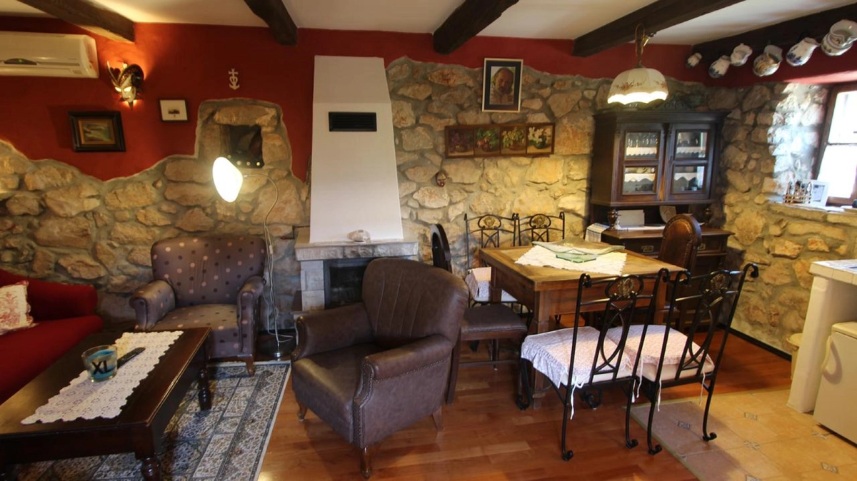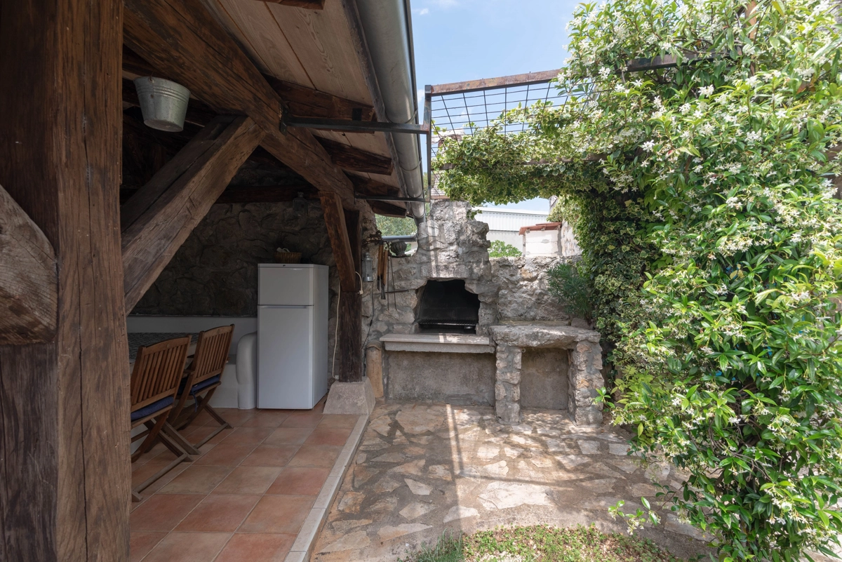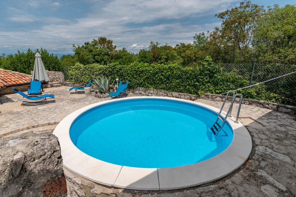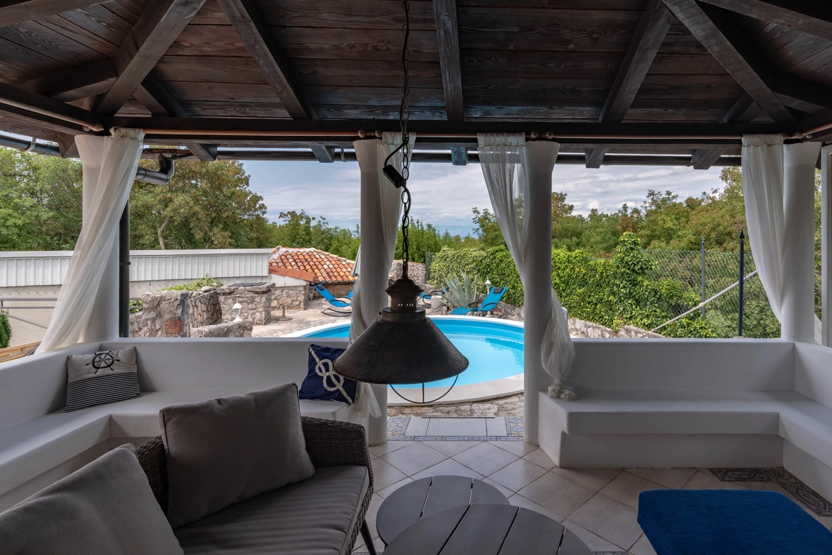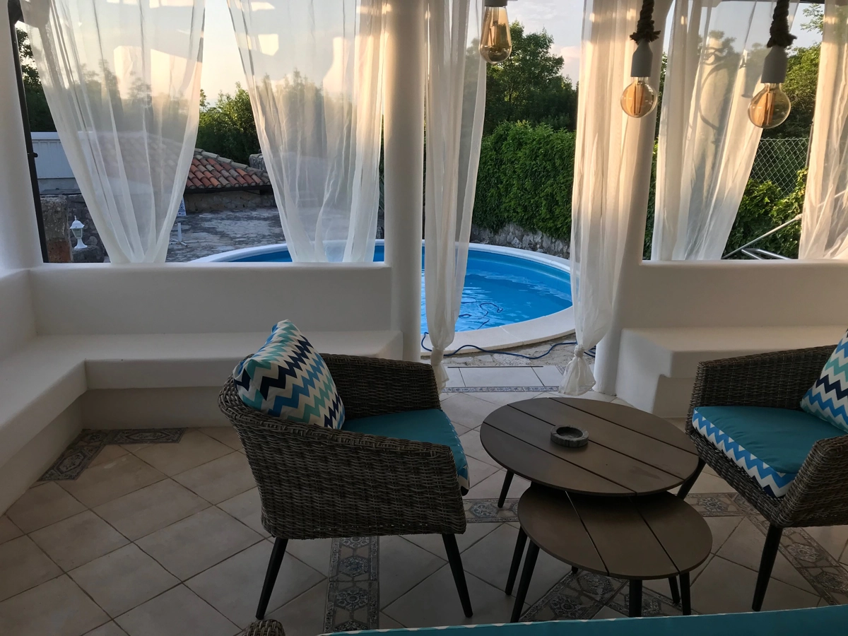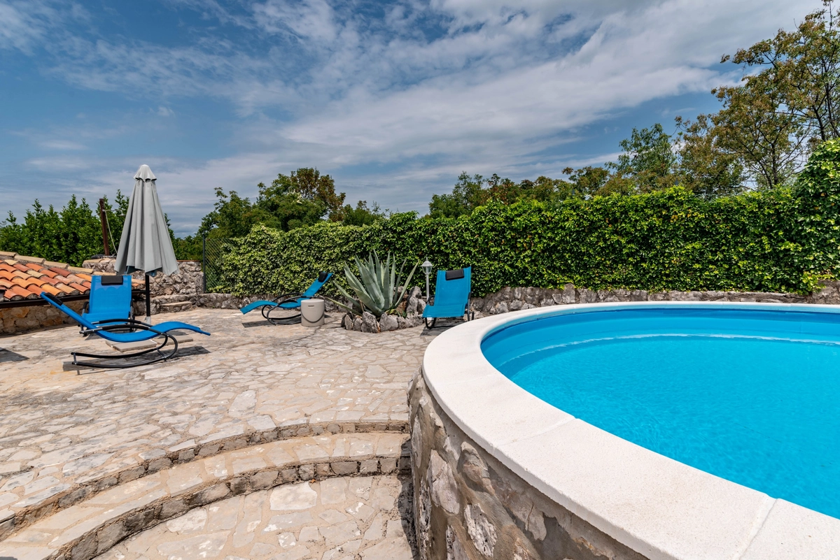 This beautiful villa with a swimming pool is located in Gabonjin on the island of Krk. It is ideal for up to a maximum of 8 people. It consists of 4 rooms (3 rooms with double beds and 1 with a bunk bed), a living room with a plasma TV and a fireplace connected to a fully equipped kitchen with all the necessary utensils for cooking and eating, a refrigerator, a stove, a microwave oven and a washing machine. washing dishes. The villa has 2 bathrooms and a washing machine. Outside the villa, guests have access to a terrace with a summer kitchen and barbecue, as well as a swimming pool. The villa is equipped with air conditioning, free Wi-Fi and private parking.