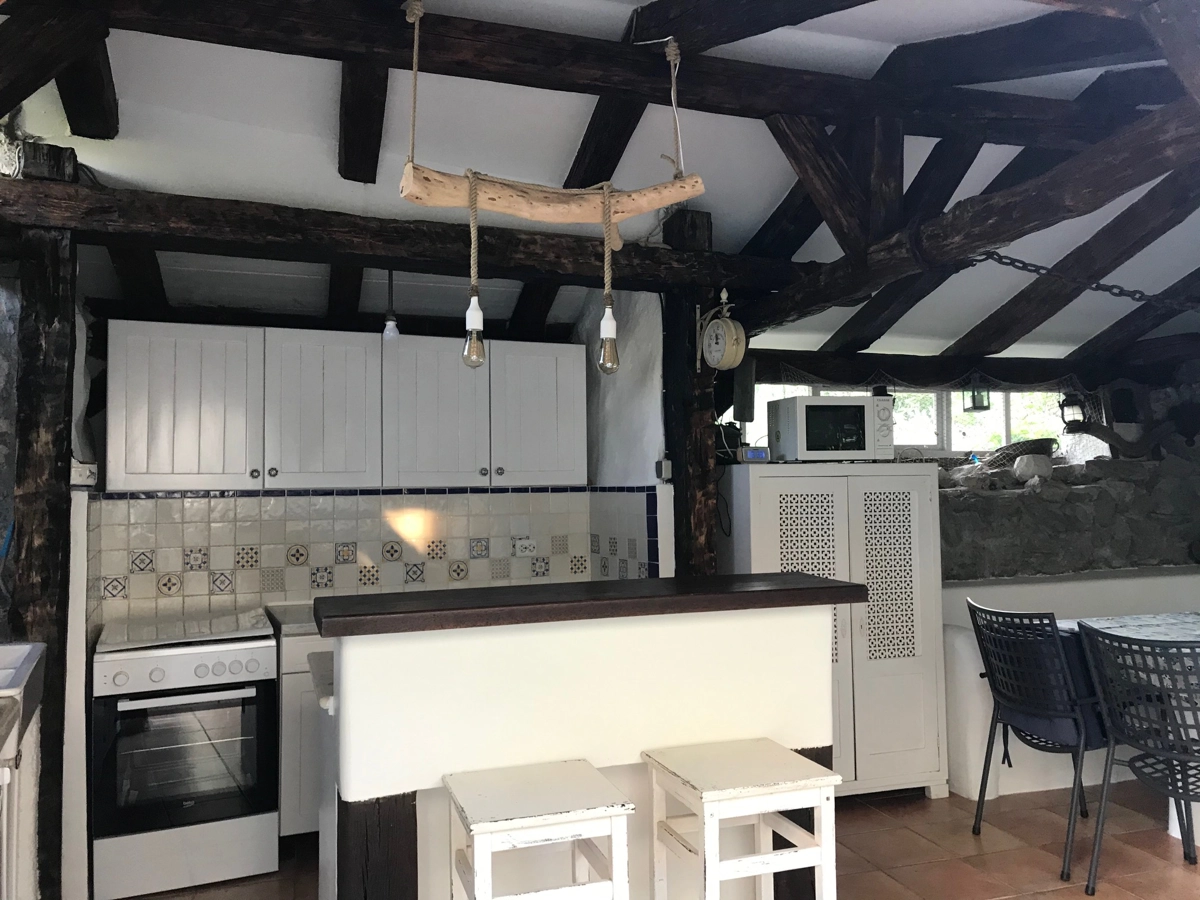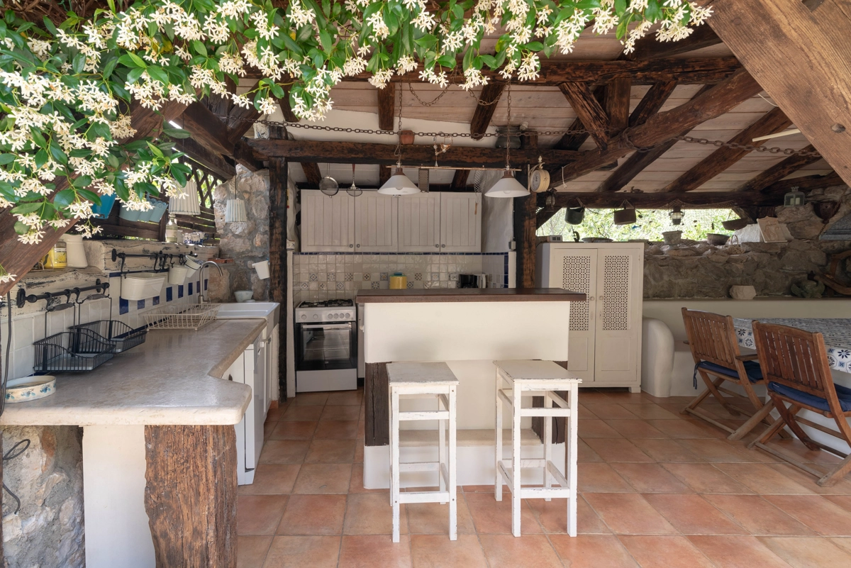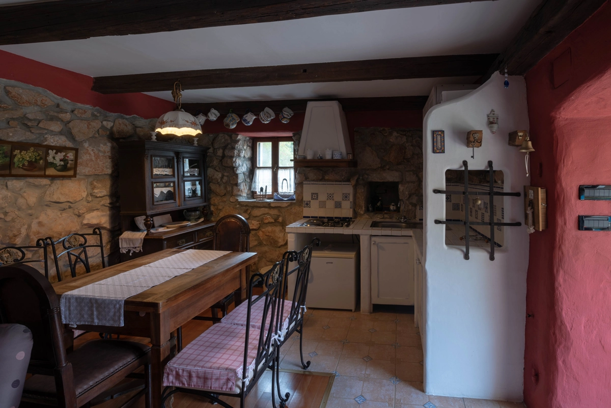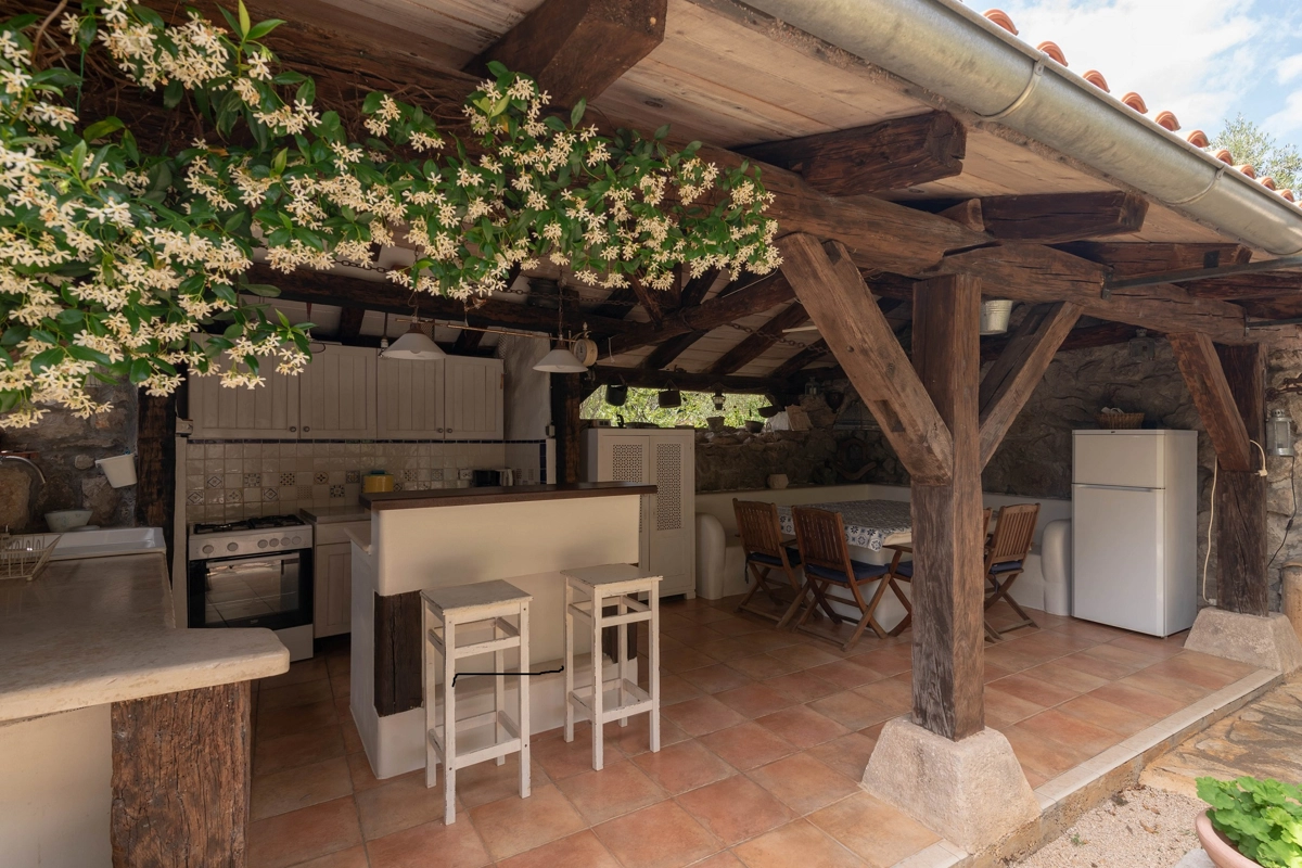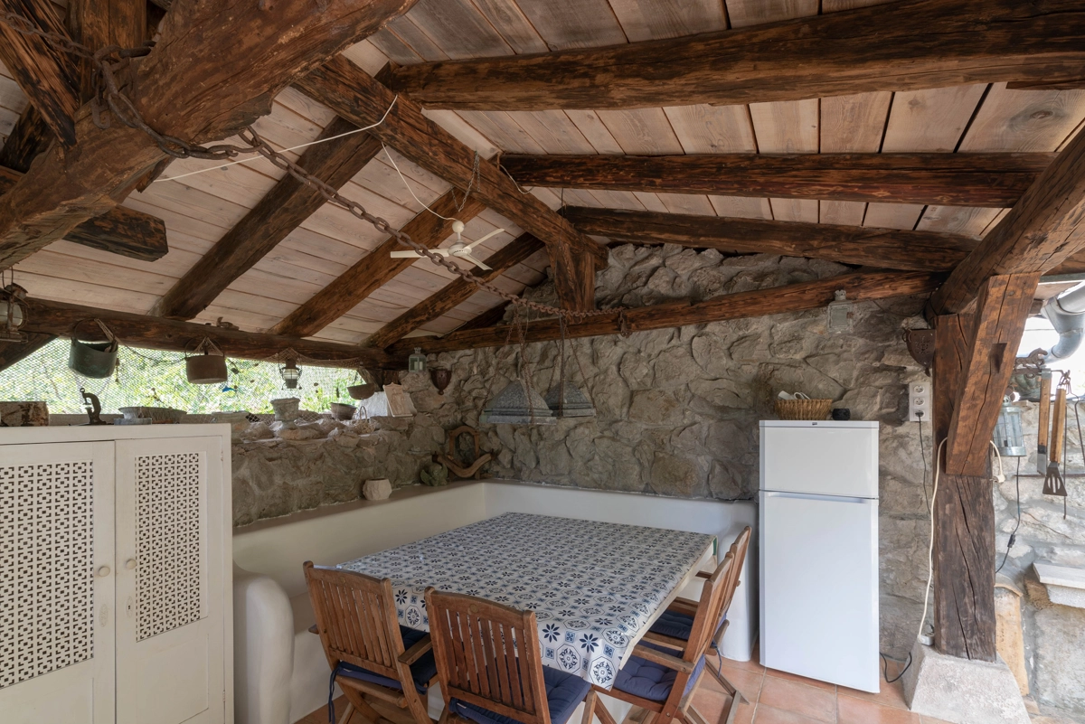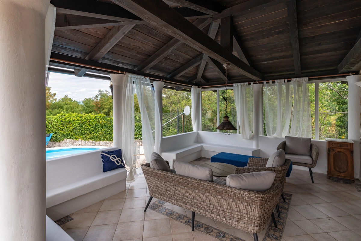 This beautiful villa with a swimming pool is located in Gabonjin on the island of Krk. It is ideal for up to a maximum of 8 people. It consists of 4 rooms (3 rooms with double beds and 1 with a bunk bed), a living room with a plasma TV and a fireplace connected to a fully equipped kitchen with all the necessary utensils for cooking and eating, a refrigerator, a stove, a microwave oven and a washing machine. washing dishes. The villa has 2 bathrooms and a washing machine. Outside the villa, guests have access to a terrace with a summer kitchen and barbecue, as well as a swimming pool. The villa is equipped with air conditioning, free Wi-Fi and private parking.