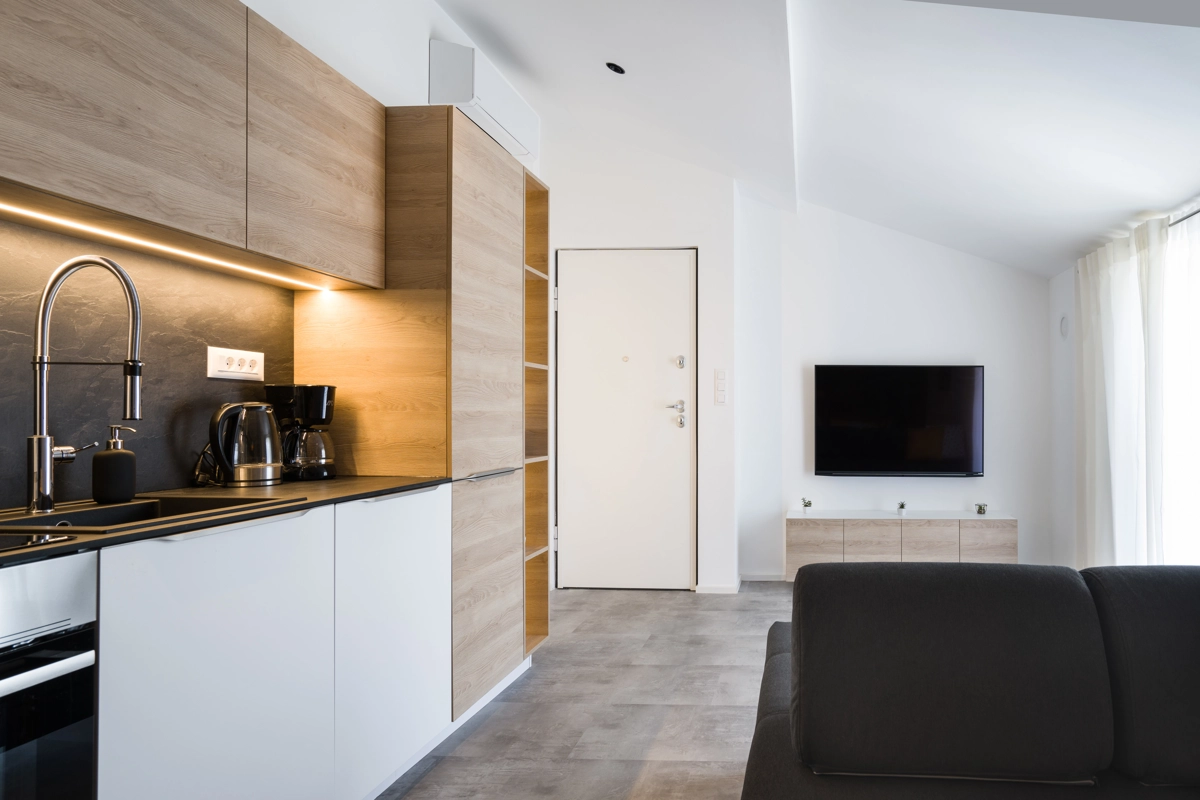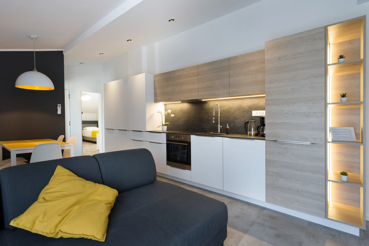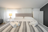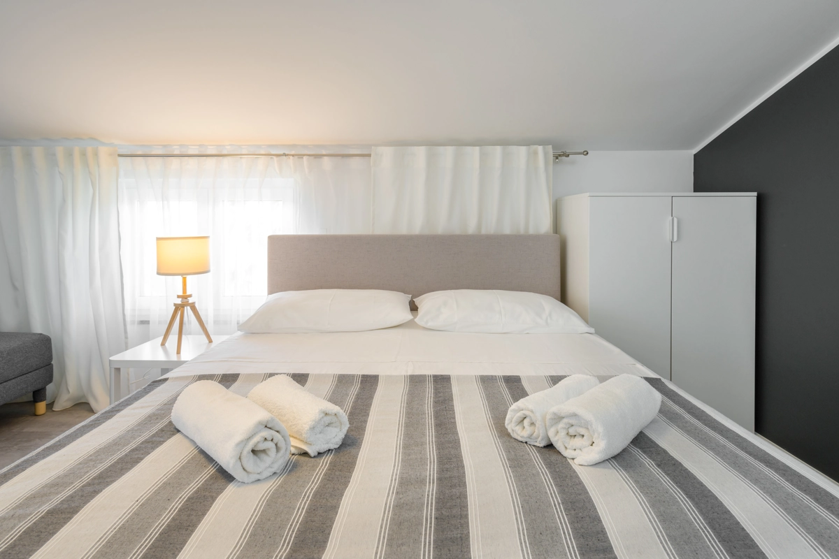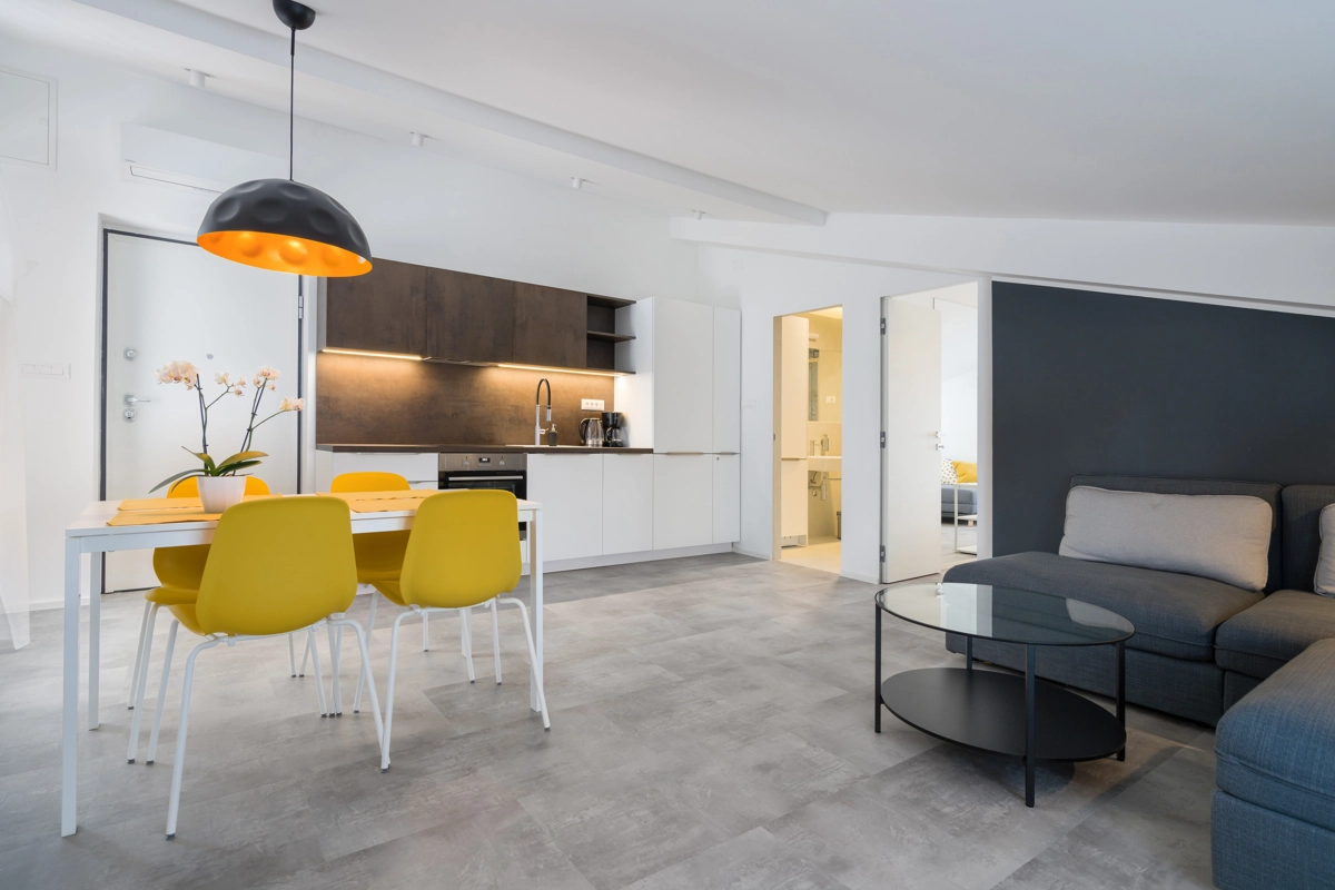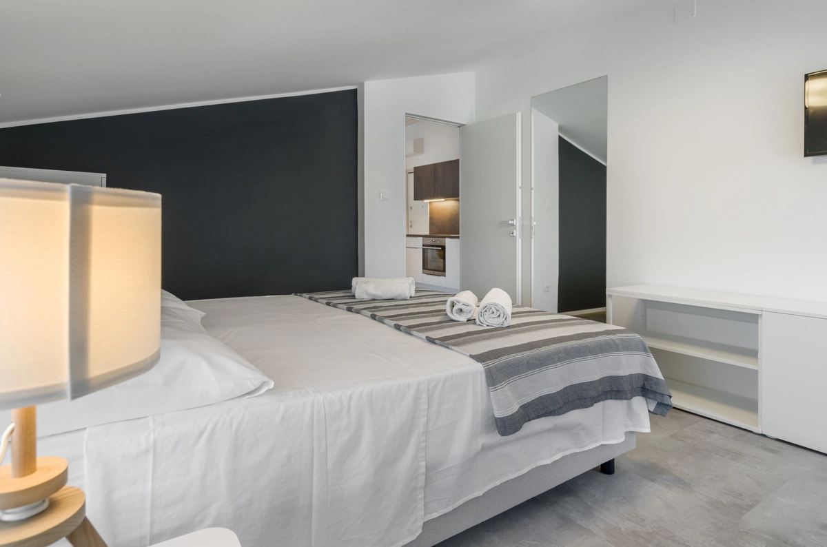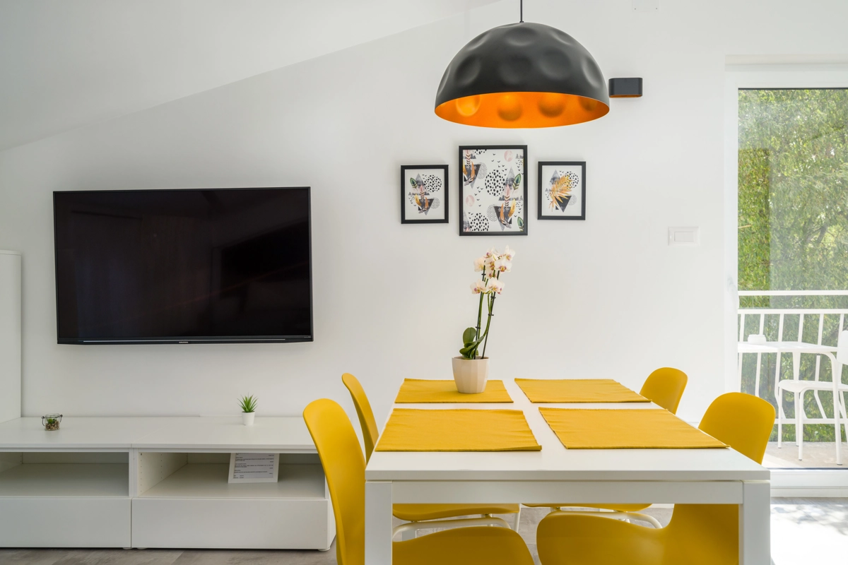 Ovaj prostrani novouređeni apartman s 4 zvjezdice za maksimalno 5 osoba i sa zasebnim ulazom se nalazi u Malinskoj na otoku Krku, na svega 50 metara od najbliže plaže, 150 metara od najbližeg dućana, 50 metara od najbližeg restorana te 100 metara od centra grada. Apartman se nalazi na drugom katu obiteljske kuće, te se sastoji od 2 prostrane spavaće sobe, velikog dnevnog boravka u kombinaciji s blagovaonicom u kojoj se nalaze stol i stolice, televizija sa satelitskim prijemom, kauč na razvlačenje na kojemu može boraviti još jedan dodatna osoba, funkcionalne kuhinje s pećnicom, pločama za kuhanje, frižiderom s ledenicom te svim posuđem potrebnim za kuhanje i jelo. Apartman također sadrži perilicu za suđe i perilicu za pranje rublja. Iz kuhinje, gosti imaju dostupan izlazak na prostrani balkon koji pruža prekrasan pogled na more, te na kojemu mogu uživati u vrućim ljetnim danima. Kupaonica se sastoji od tuš kabine, wc-a te umivaonika. U apartmanu se nalazi i zasebni toalet. Privatni parking je osiguran na bočnoj strani zgrade. Gosti također imaju mogućnost uporabe roštilja koji se nalazi u dvorištu zgrade.