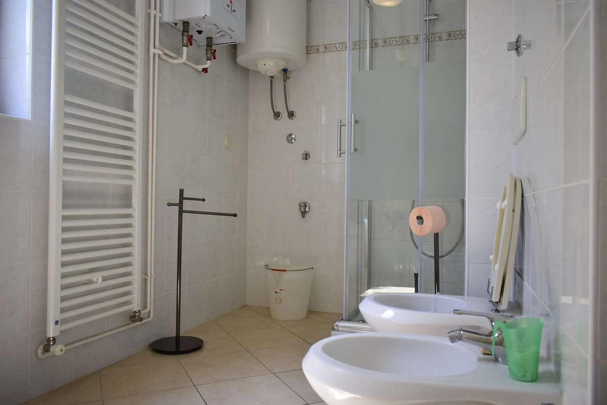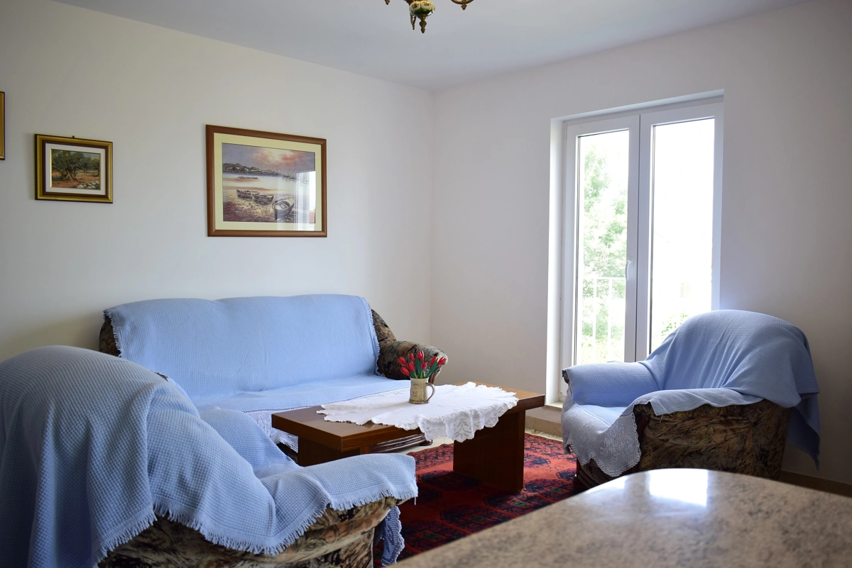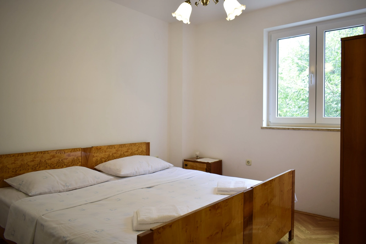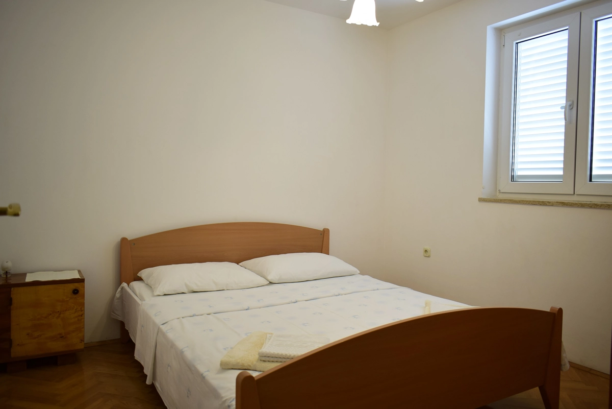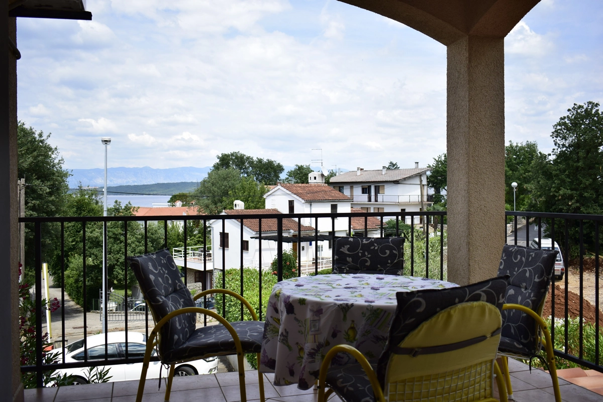 Questo bellissimo e confortevole appartamento si trova a Malinska sull'isola di Krk, a circa 120 metri dalla spiaggia più vicina, a 50 metri dal negozio più vicino ea 50 metri dal ristorante più vicino. Si trova al primo piano dell'edificio, ed è composto da: 2 camere da letto con letto matrimoniale e armadio, un soggiorno con divano e 2 poltrone, una sala da pranzo con tavolo e sedie, una cucina ben attrezzata con forno, piano cottura con piastra ad induzione, tostapane, frigorifero con ghiacciaia e tutti gli utensili necessari per cucinare e mangiare. Dal soggiorno gli ospiti hanno accesso ad un bellissimo terrazzo che offre una vista sul mare e dove possono godersi le vacanze primaverili/estive. Il bagno ha una cabina doccia ed una toilette. Il parcheggio gratuito si trova di fronte all'edificio.