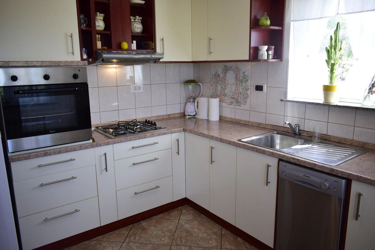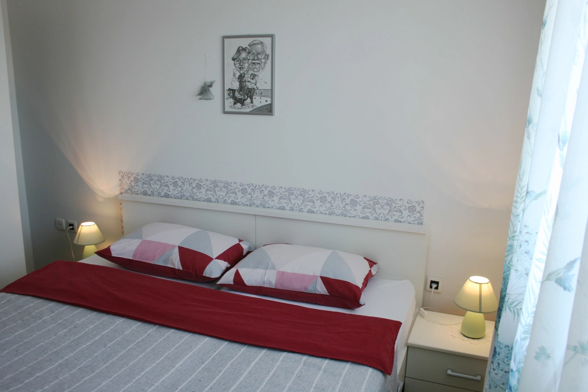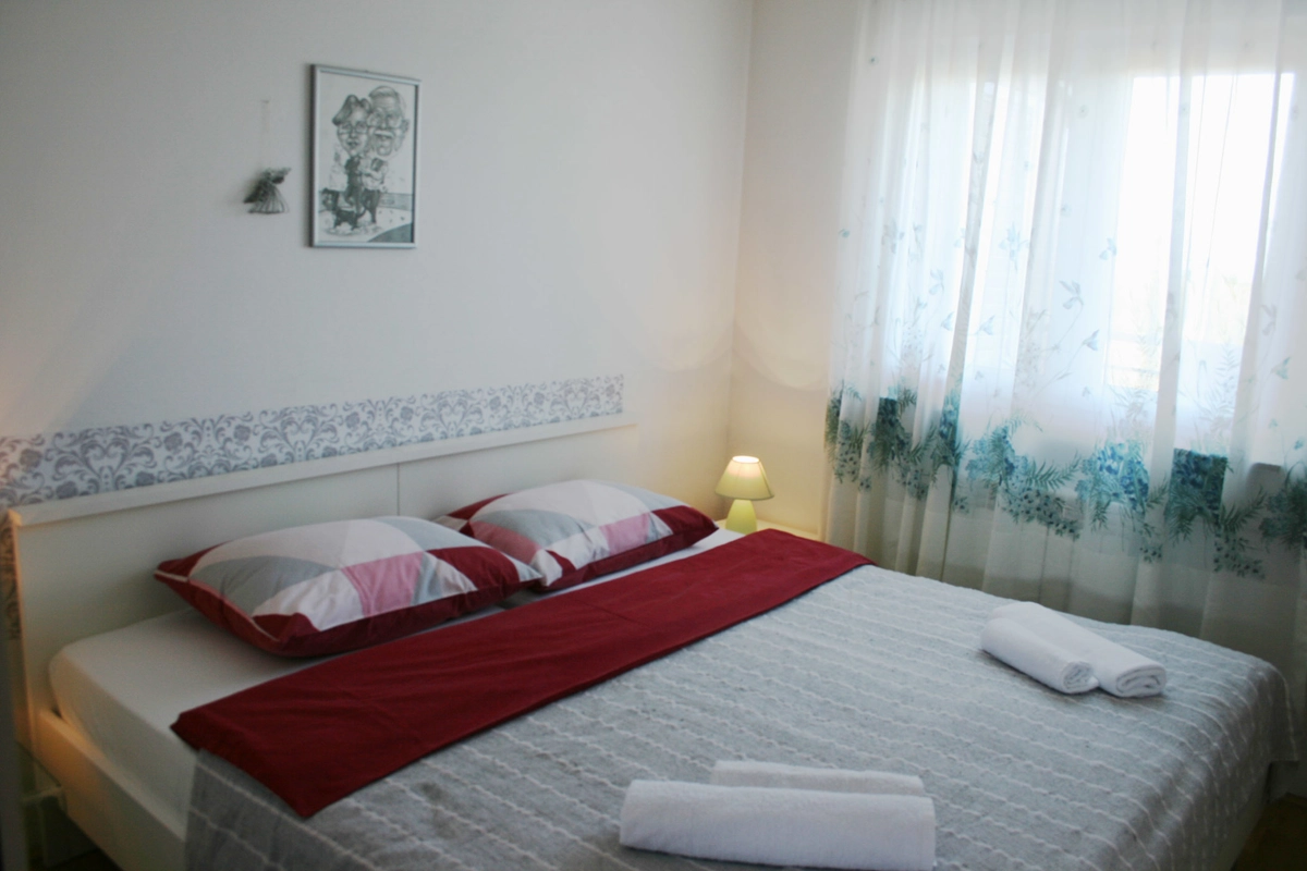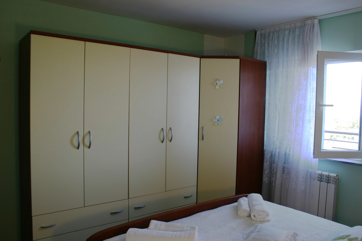 L'appartamento si trova nel piano terra della casa e compone da 3 camere da letto, 2 soggiorni, cucina, bagno con doccia, toilette e lavatrice, e una bellissima terrazza con vista al mare sul quale potete godere e rilassarsi durante le vostre vacanze. Due camere da letto hanno grandi letti doppi, mentre la terza camera da letto ha un letto singolo per una persona. La cucina ha un fornello (a gas e elettrico), un forno, una lavastoviglie, un frigorifero con congelatore e tutti i piatti e stoviglie necessari per cucinare e mangiare. L'appartamento è climatizzato e l'uso dell'aria condizionata è inclusa nel prezzo. Il parcheggio privato è assicurato di fronte alla casa. Nel giardino davanti all'appartamento si trova una piscina e griglia che potete usare.