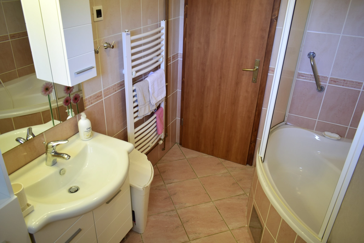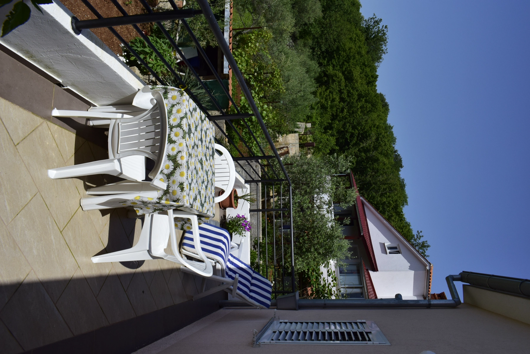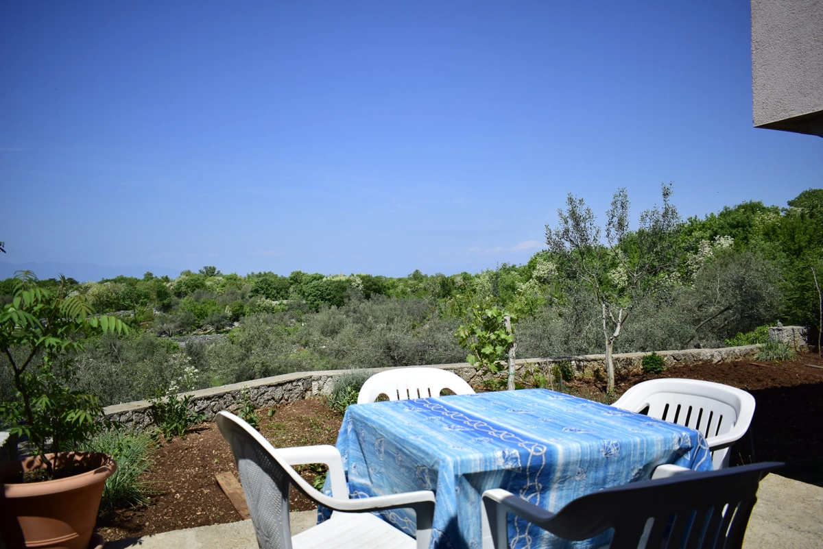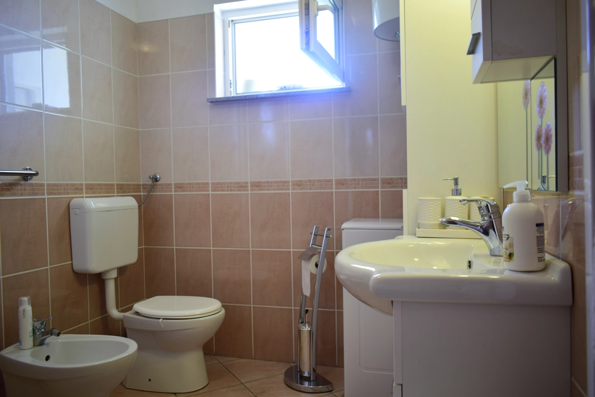 L'appartamento si trova nel piano terra della casa e compone da 3 camere da letto, 2 soggiorni, cucina, bagno con doccia, toilette e lavatrice, e una bellissima terrazza con vista al mare sul quale potete godere e rilassarsi durante le vostre vacanze. Due camere da letto hanno grandi letti doppi, mentre la terza camera da letto ha un letto singolo per una persona. La cucina ha un fornello (a gas e elettrico), un forno, una lavastoviglie, un frigorifero con congelatore e tutti i piatti e stoviglie necessari per cucinare e mangiare. L'appartamento è climatizzato e l'uso dell'aria condizionata è inclusa nel prezzo. Il parcheggio privato è assicurato di fronte alla casa. Nel giardino davanti all'appartamento si trova una piscina e griglia che potete usare.