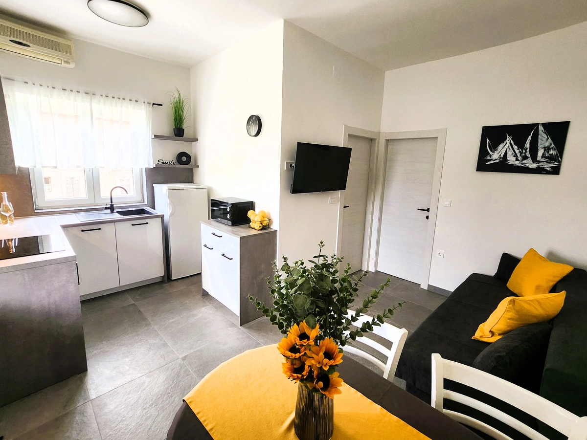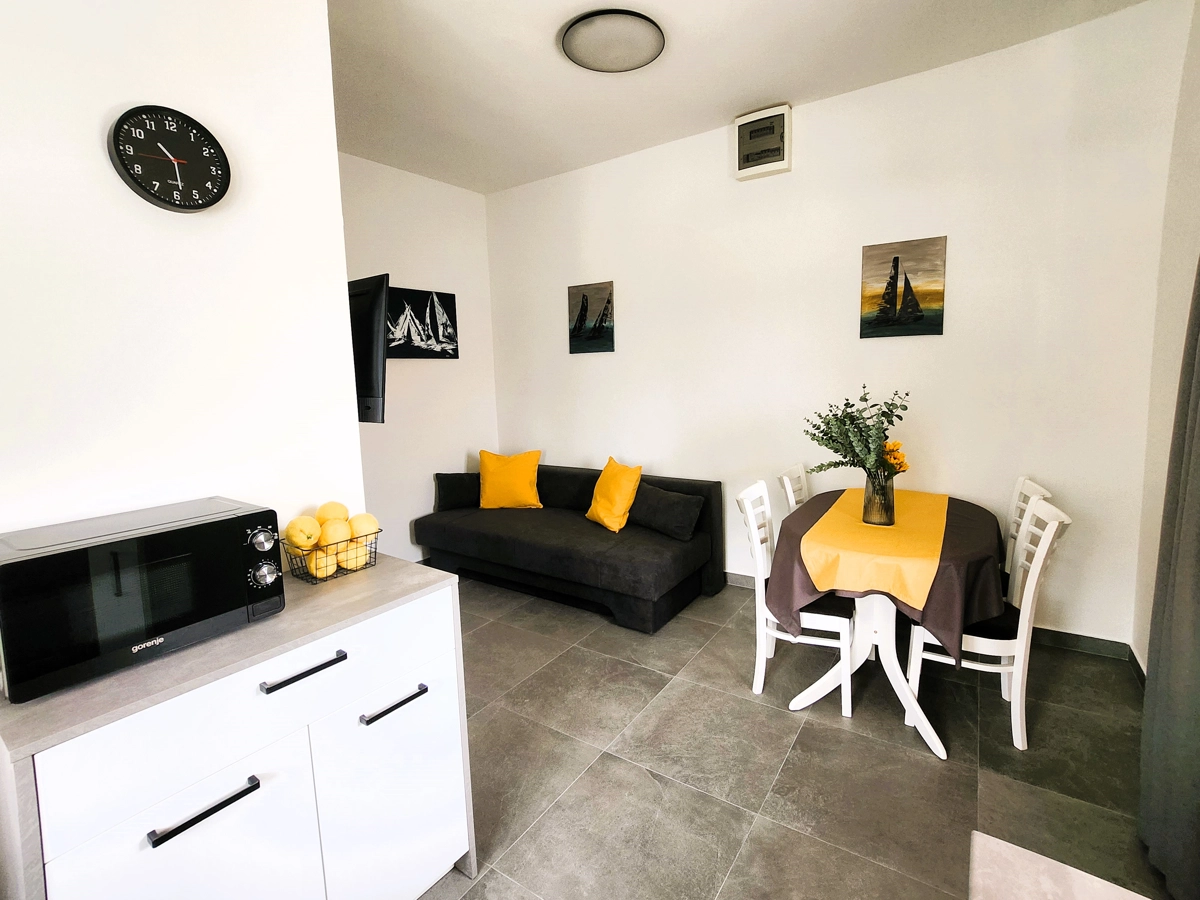 Questo bellissimo appartamento Maestral 2 è allontanato a soli 50 metri dalla spiaggia più vicina. Alla spiaggia di ghiaia è necessario camminare solo 1 minuto. L'appartamento è allontanato a soli 100 metri dalla stazione dei pullman. L'appartamento offre WiFi gratuito e parcheggio privato gratuito. Nell'appartamento c'è una camera di soggiorno con un divano letto per 2 persone aggiunte, una sala da pranzo con tavola e sedie, ed una cucina con forno, fornello a gas e un frigorifero con congelatore. L'appartamento offre anche una televisione con programmi satellitari. L'appartamento offre un grande balcone con la vista sul mare, dove potete relassarvi e dove potete godere nella tazza di caffè durante le Vostre vacanze.Il centro è allontanato a soli 100 metri, con bar, ristoranti e pasticcerie nei quali potete godere nel tempo bellissimo.