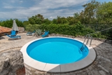 Questa bellissima villa con piscina si trova a Gabonjin sull'isola di Krk. È ideale per un massimo di 8 persone. E' composto da 4 camere (3 camere con letti matrimoniali e 1 con letto a castello), un soggiorno con TV plasma e un camino collegato ad una cucina completamente attrezzata con tutti gli utensili necessari per cucinare e mangiare, frigorifero, piano cottura , un forno a microonde ed una lavastoviglie. La villa dispone di 2 bagni ed una lavatrice. All'esterno della villa, gli ospiti hanno accesso ad un terrazzo con cucina estiva con barbecue ed  una piscina. La villa è dotata di aria condizionata, Wi-Fi gratuito e parcheggio privato.