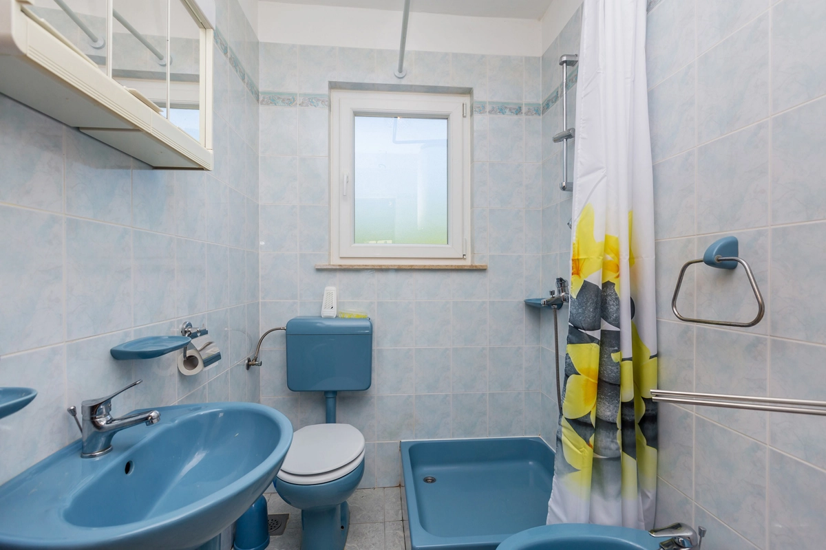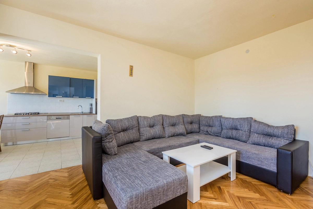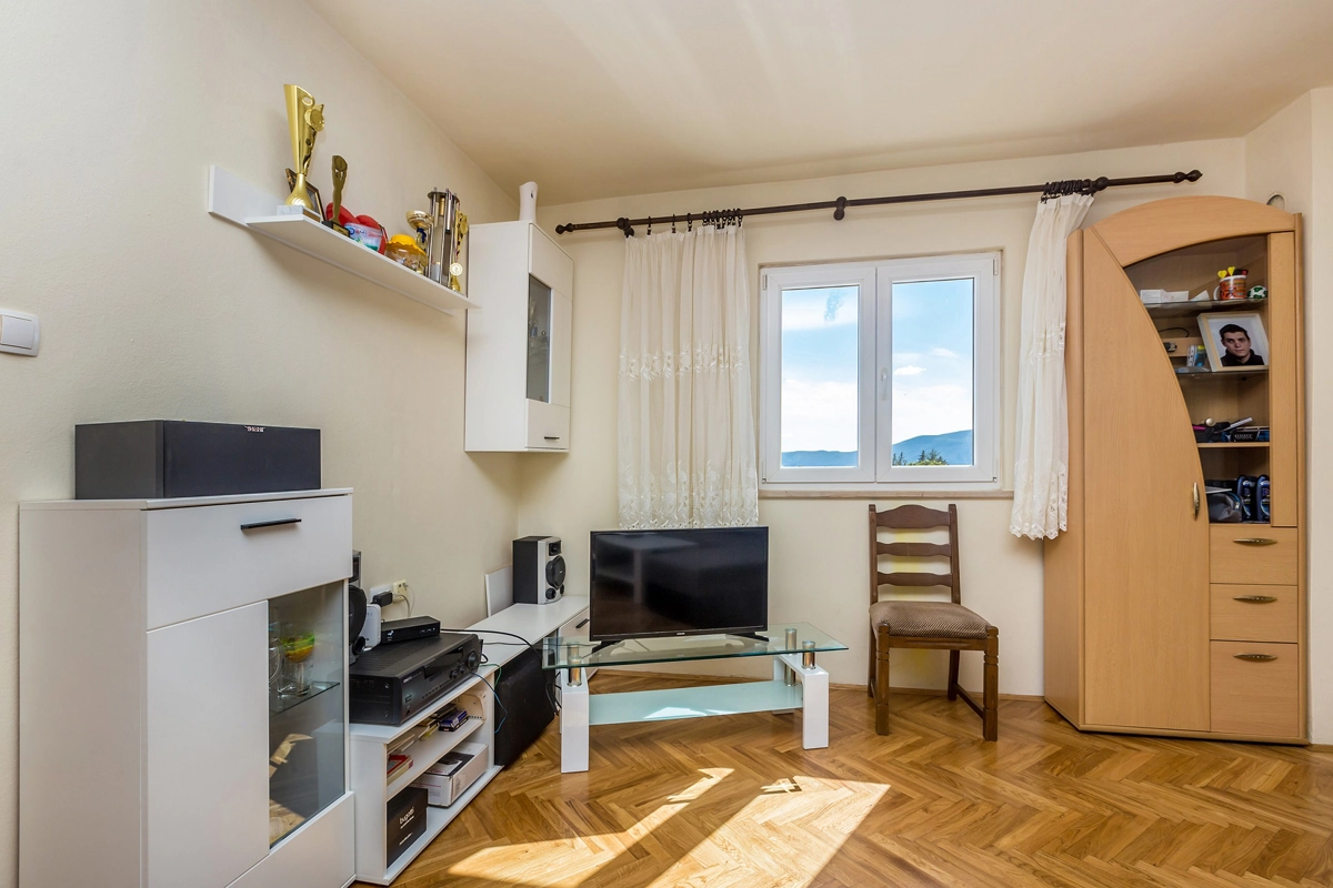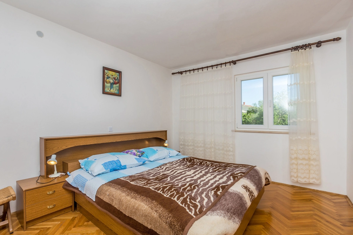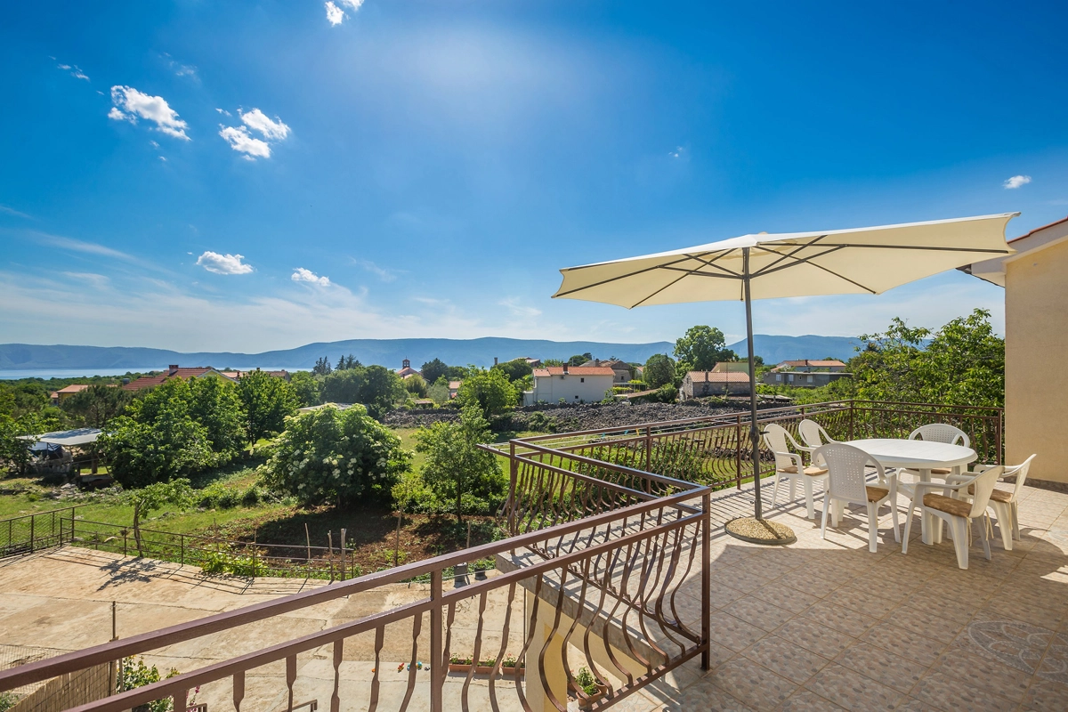 This beautiful spacious apartment is located in the quiet town of Skrpčići, in the area between the town of Krk and the ferry port of Valbiska. The apartment is ideal for 6 people. It consists of 3 large bedrooms, a bathroom with a shower, a modern kitchen with a dishwasher and a dining room, and a living room with a sofa bed. It also has access to a large terrace with a view of the sea and nature, which you can enjoy during your vacation. The apartment has 2 air conditioners, one is in the bedroom, the other in the living room and is connected by wireless internet. The town center, shop, bus station and restaurant are in the immediate vicinity.