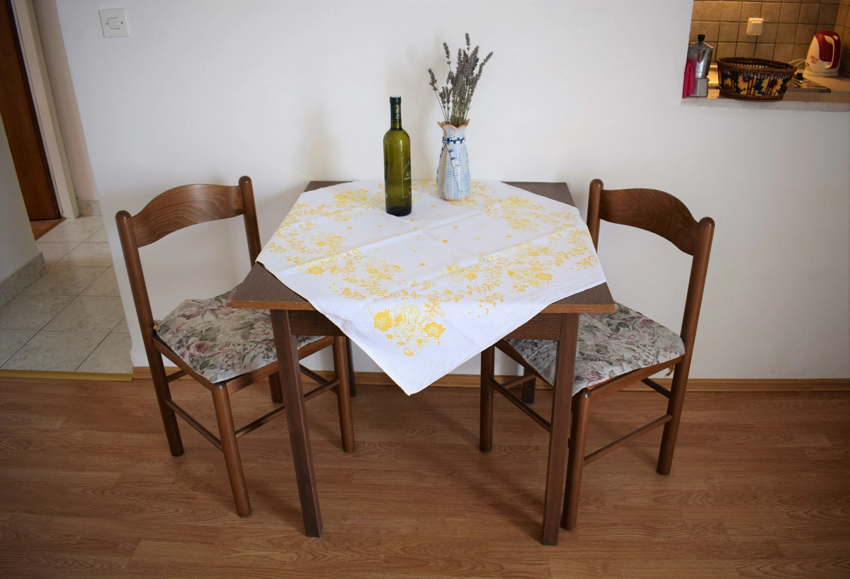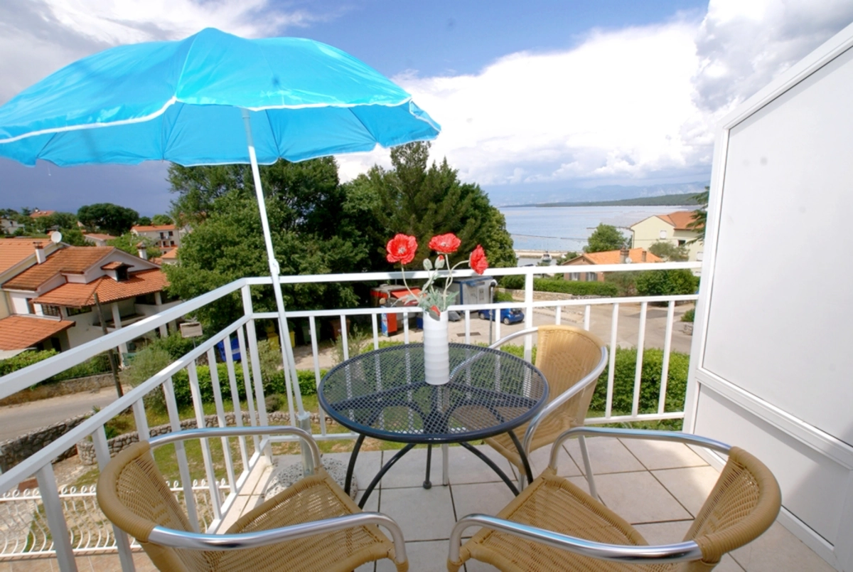 Apartment Rina is located in Vantačići next to Malinska. This beautiful apartment with a separate entrance is located 50 meters from the nearest beach and sea. The apartment is located on the first floor of a family house and consists of: 1 bedroom with a double bed, a small but well-equipped corner kitchen with all the necessary appliances and utensils needed for cooking and eating, a living room / dining room with satellite television reception and a large sofa bed that can sleep two people. The bathroom has a shower cabin and a toilet. The apartment includes a terrace with a wonderful view of the sea. The apartment has free WiFi and is air-conditioned. This apartment even has two terraces that have a view of the sea. There is also a parking lot and a barbecue for guests in the yard next to the house.