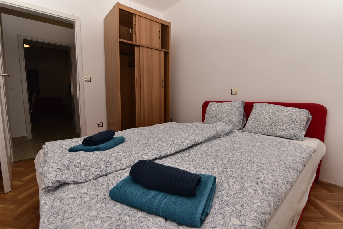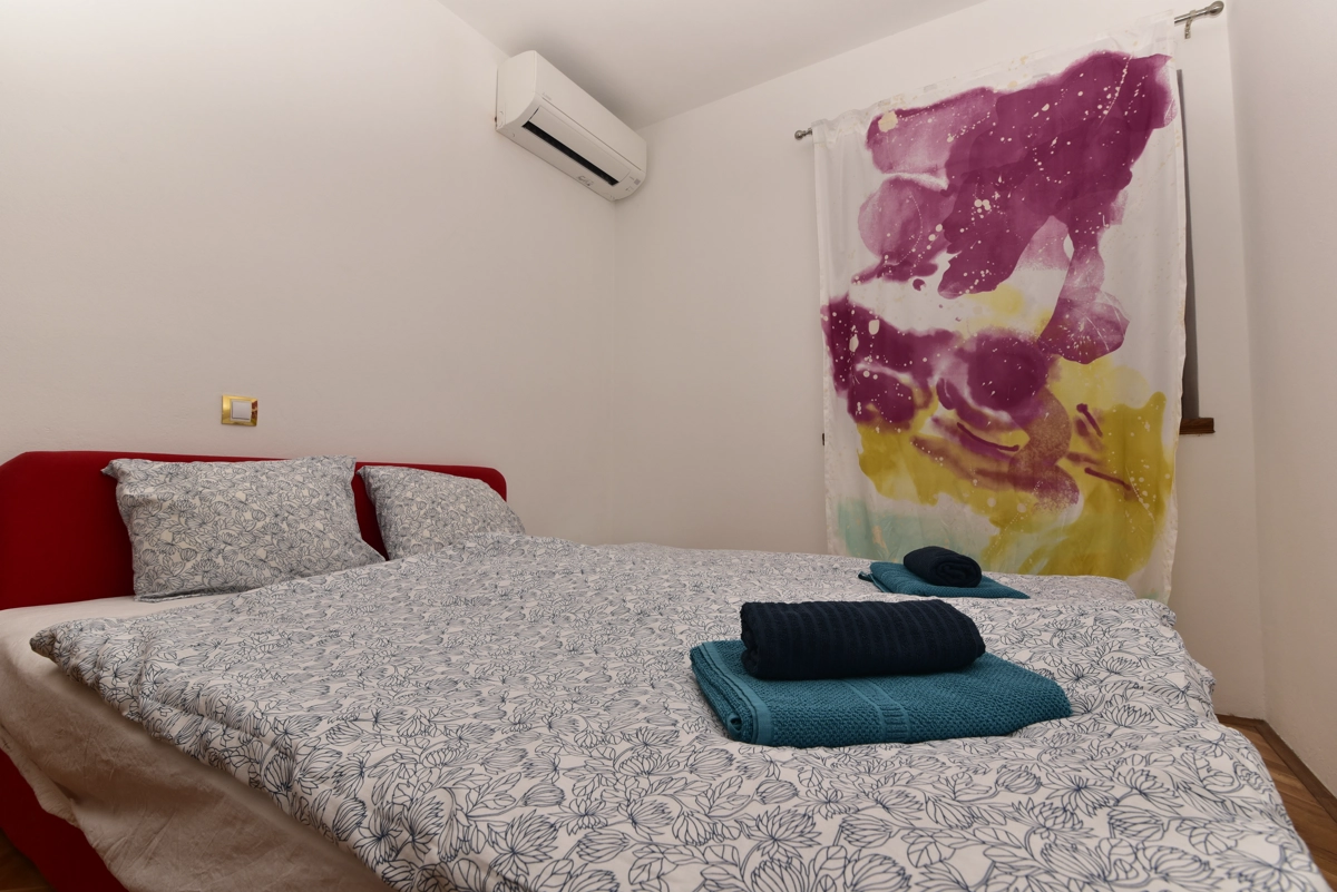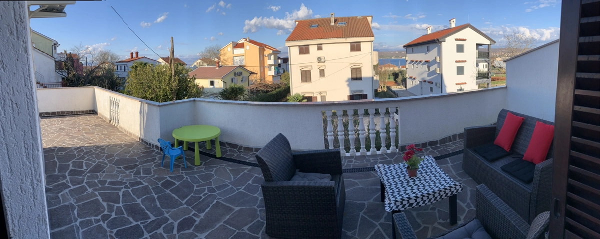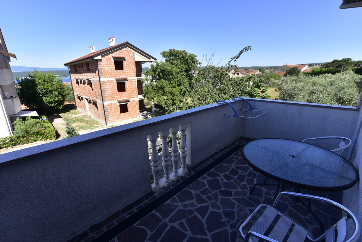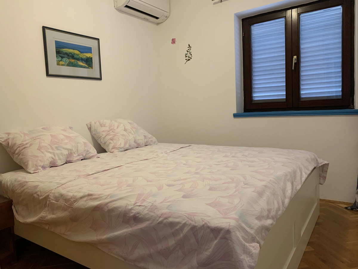 This beautiful apartment with a separate entrance on the left side of the building is located on the first floor of a family house about 250 meters from the main beach in Porat on the island of Krk. The apartment can accommodate 4 people. It consists of 2 separate bedrooms, a bathroom with a shower cabin, a toilet and a sink, a kitchen connected to the living room and a balcony with a view of the sea. Guests in the apartment have everything they need for a vacation: bed linen, towels, soap, toilet paper, kitchen appliances, cooking and eating utensils. If guests want to go to an equipped beach with a free shower, visit a small cafe on the beach and a lively atmosphere, or if they prefer nature with a small comfortable beach for two, all of this is within a radius of 500 meters from the apartment. There is a bakery in town with fresh bread and bakery products every morning. Also, for lunch or a romantic dinner in the center of Porto, there are two restaurants that serve local and fish cuisine, as well as a pizzeria. This is only a 5-minute walk from the apartment. A small shop is nearby, only a 10-minute walk from the apartment. Throughout the day, guests can ride the road train to Malinska and back. There is a monastery and church of Mary Magdalene in Porto, which also houses a museum about the history of the city and the way of living in history. Near the apartment there is a farm with seasonal organic vegetables and fruits.