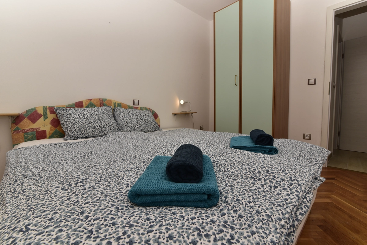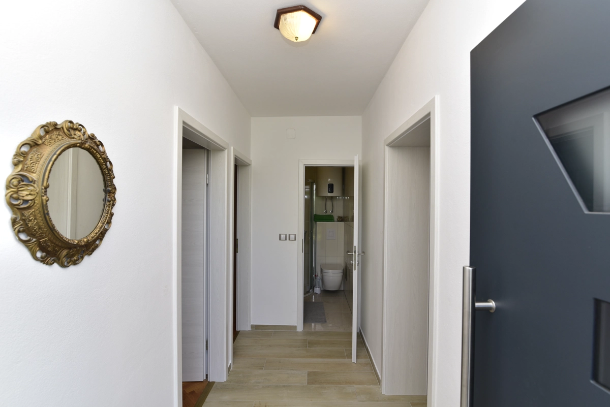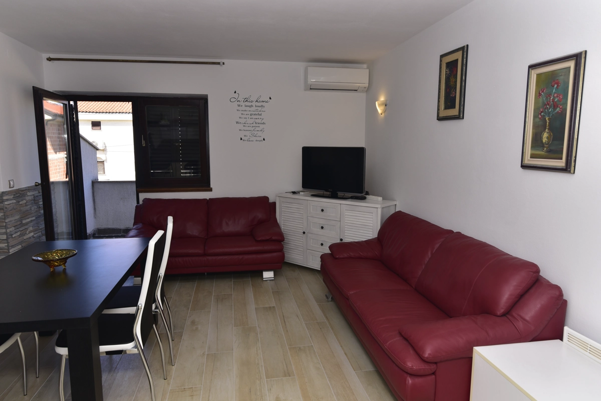 Apartment Oscar is located in a quiet location on the 1st floor of a smaller residential building in Porat. Guests have at their disposal a private terrace with a partial view of the sea, 2 bedrooms, a living room with a kitchen and a dining room, and a bathroom with a shower. In the yard there is also a shared terrace with a barbecue, and a secured parking space. The apartment can accommodate up to 4 people. Ideal for a family or a small group of friends. Among the conveniences, there is also free WiFi, satellite TV, and air conditioning. The beach is only 250 m away.