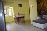 This beautiful and cozy apartment with a separate entrance is located on the ground floor of a family house situated in Malinska on the island of Krk, about 250 meters from the nearest pebble beach and center, 50 meters from the nearest shop, and about 250 meters from the nearest restaurant. The apartment can accommodate up to 4 people (2 adults and 2 children) and it features in: 1 bedroom with a matrimonial bed, a living room with a pull-out couch where 2 additional guests can sleep and a TV with satellite reception. The living room is connected to the dining room and a very well equipped kitchen where You can find all of the necessary kitchenware and cutlery needed for cooking and eating. The apartment is air conditioned and equipped with a free WiFi. The bathroom consists of a shower cabin, a toilet, a washstand and a washing machine that guests can use. The covered terrace of 20 m2 is surrounded by grape vine and it is available for guests to use. In the yard of the apartment, guests have access to a barbecue that is available for communal usage. On the first floor of this house, there is another apartment Sabina that can accommodate up to 5 people. Pets are not allowed.