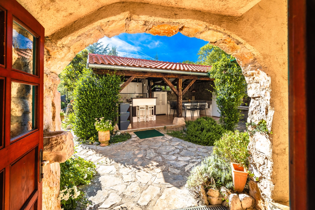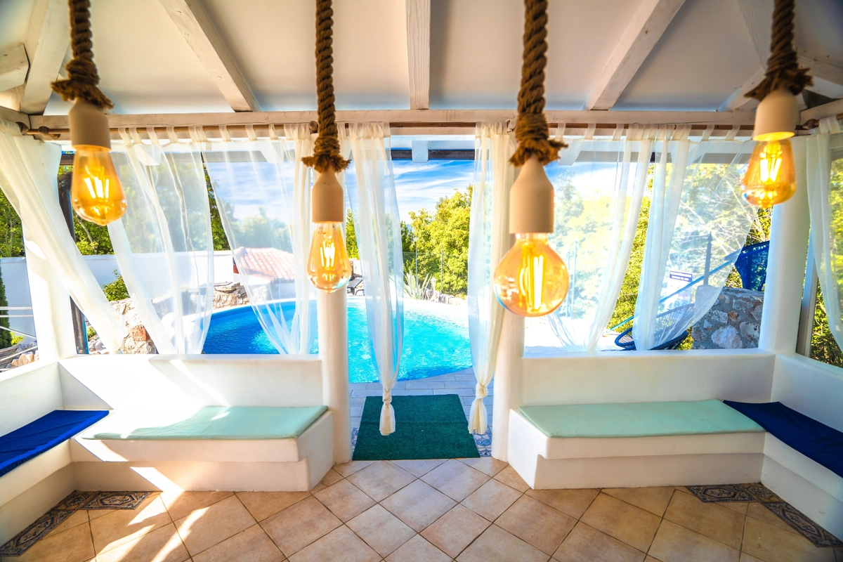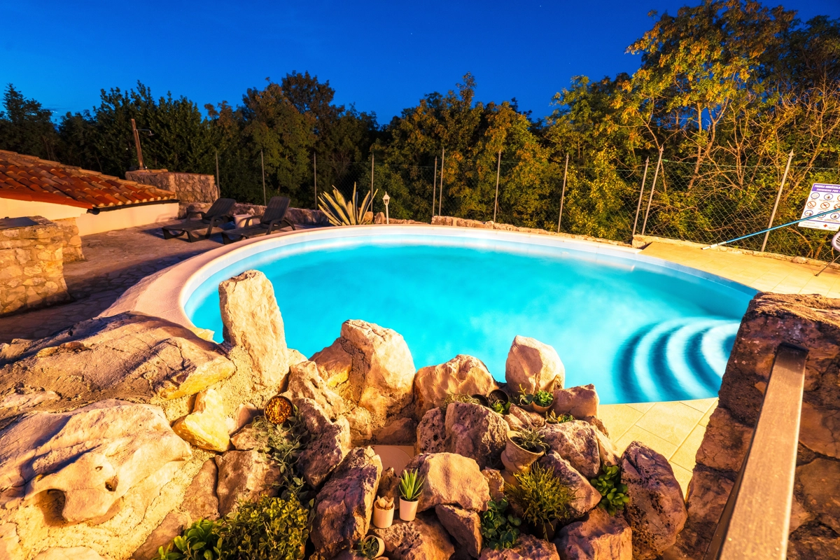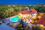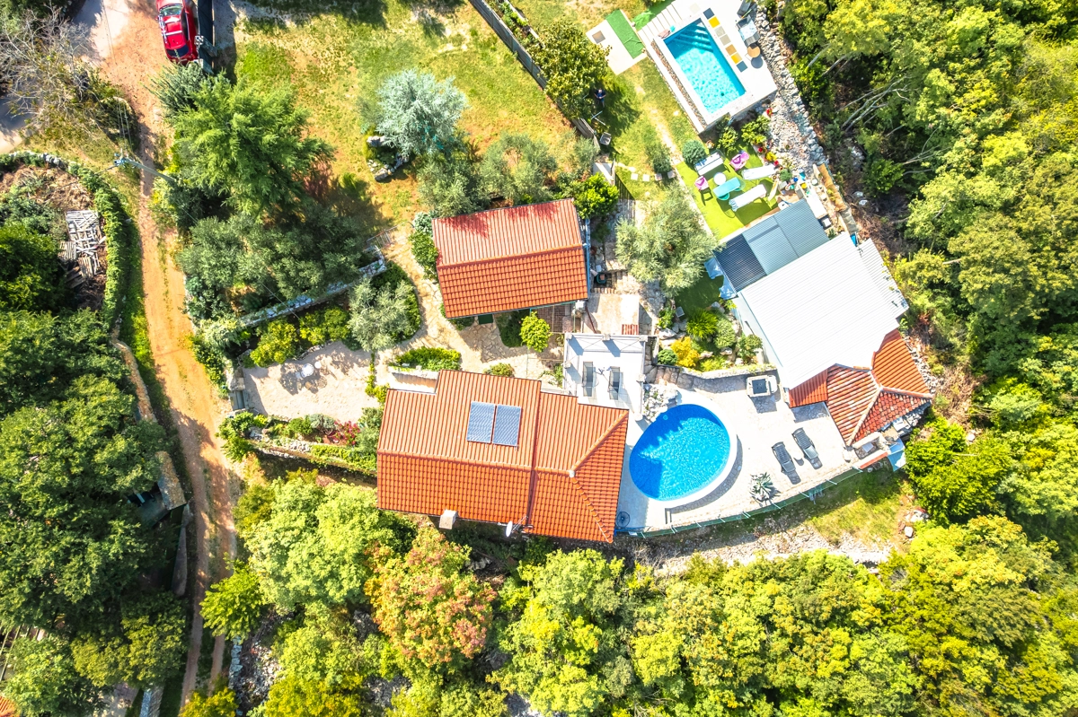 This beautiful villa with a swimming pool is located in Gabonjin on the island of Krk. It is ideal for up to a maximum of 8 people. It consists of 4 rooms (3 rooms with double beds and 1 with a bunk bed), a living room with a plasma TV and a fireplace connected to a fully equipped kitchen with all the necessary utensils for cooking and eating, a refrigerator, a stove, a microwave oven and a washing machine. washing dishes. The villa has 2 bathrooms and a washing machine. Outside the villa, guests have access to a terrace with a summer kitchen and barbecue, as well as a swimming pool. The villa is equipped with air conditioning, free Wi-Fi and private parking.
