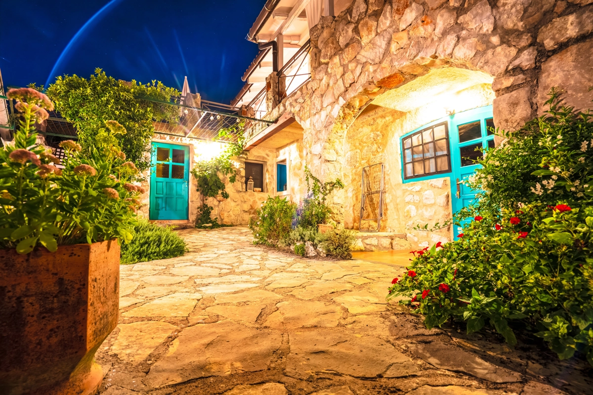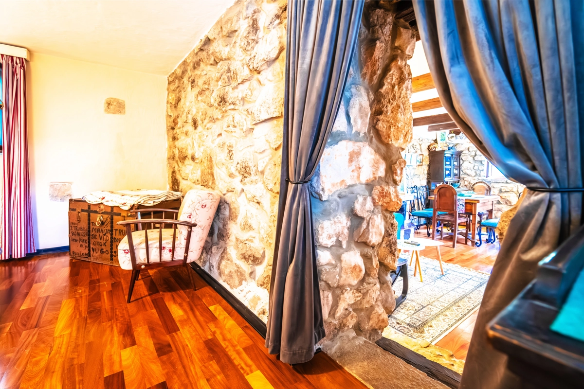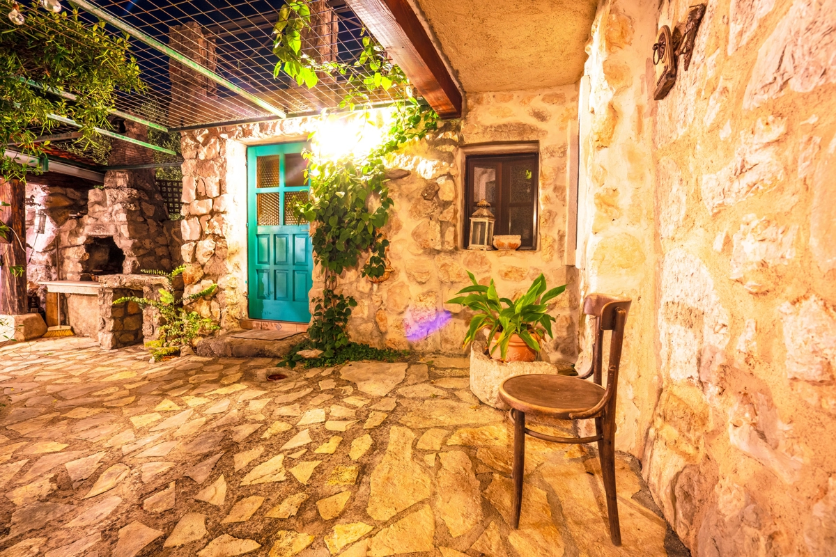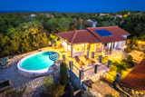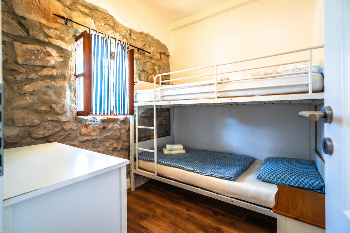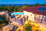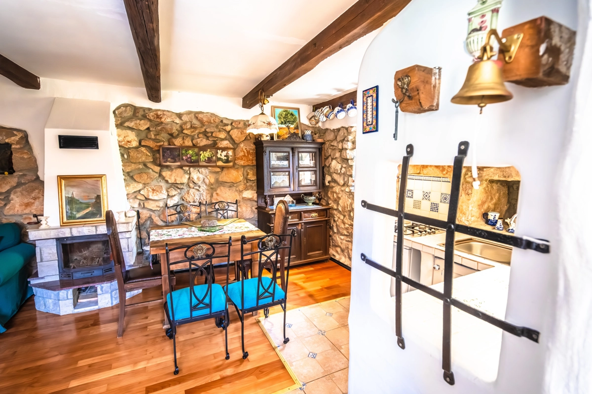 This beautiful villa with a swimming pool is located in Gabonjin on the island of Krk. It is ideal for up to a maximum of 8 people. It consists of 4 rooms (3 rooms with double beds and 1 with a bunk bed), a living room with a plasma TV and a fireplace connected to a fully equipped kitchen with all the necessary utensils for cooking and eating, a refrigerator, a stove, a microwave oven and a washing machine. washing dishes. The villa has 2 bathrooms and a washing machine. Outside the villa, guests have access to a terrace with a summer kitchen and barbecue, as well as a swimming pool. The villa is equipped with air conditioning, free Wi-Fi and private parking.